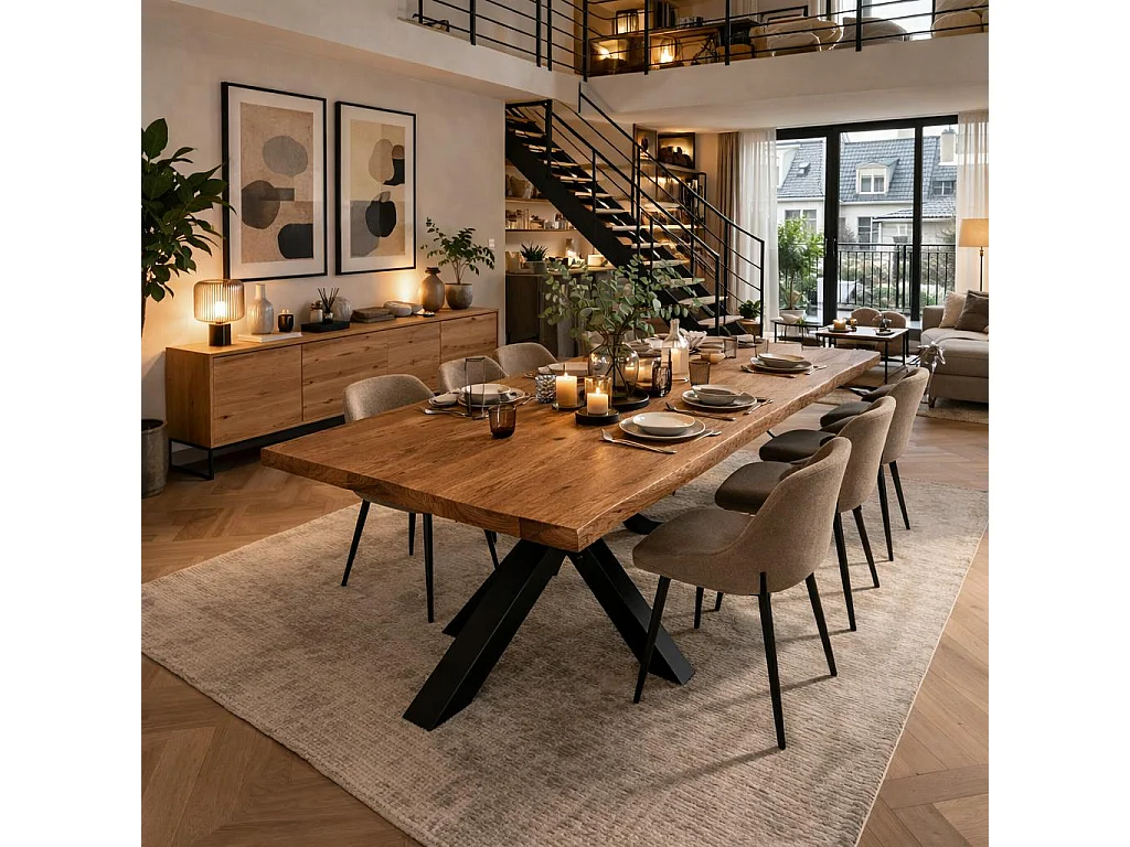 Table extensible chêne brun bords naturels pied noir 220 cm PALERME
