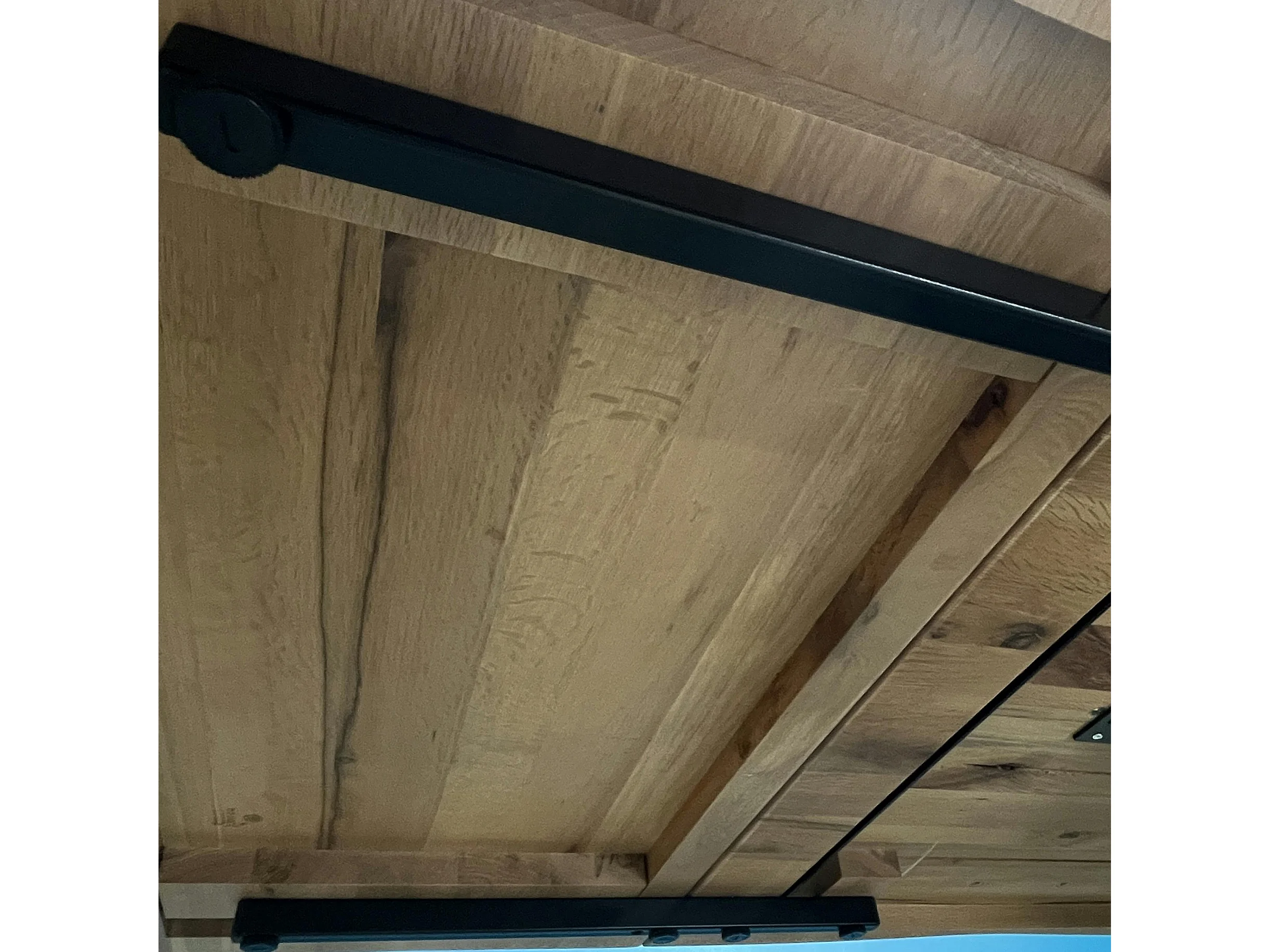 Table extensible chêne brun bords naturels pied noir fin 220 cm PALERME