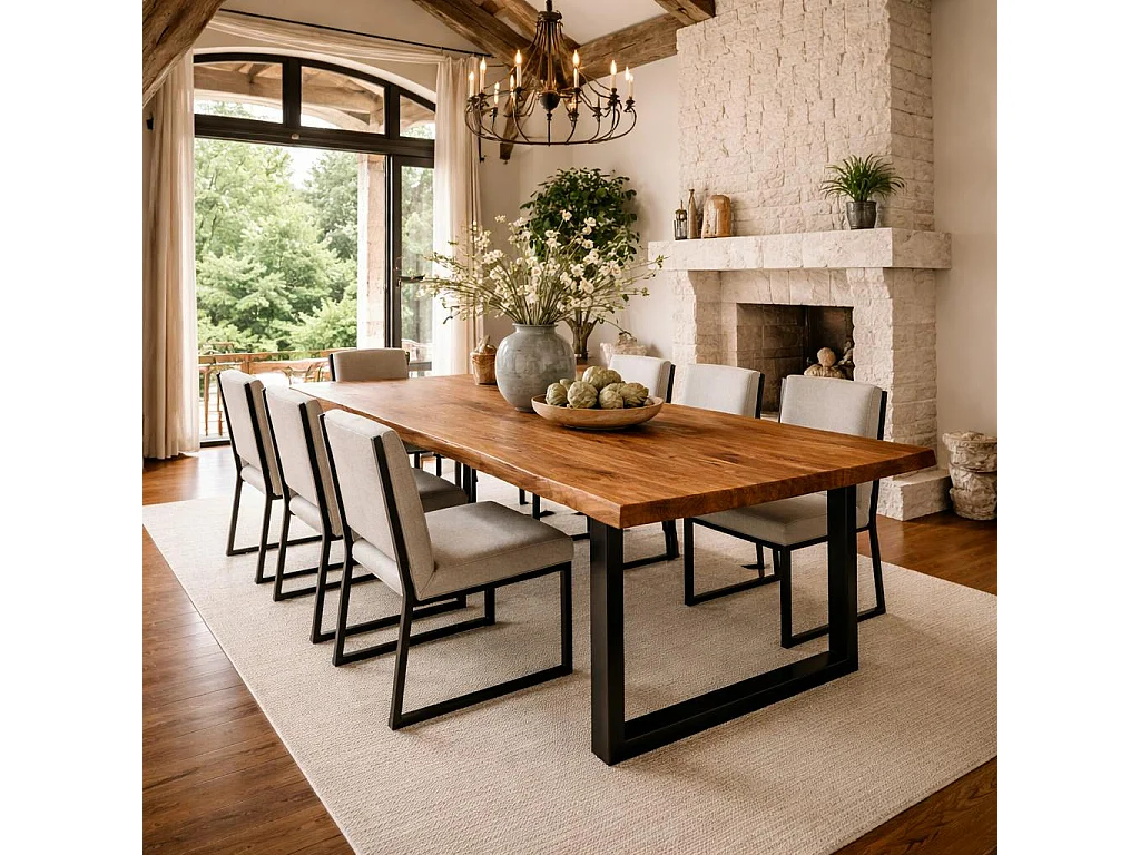 Table extensible chêne brun bords naturels pieds en U 180 cm PALERME
