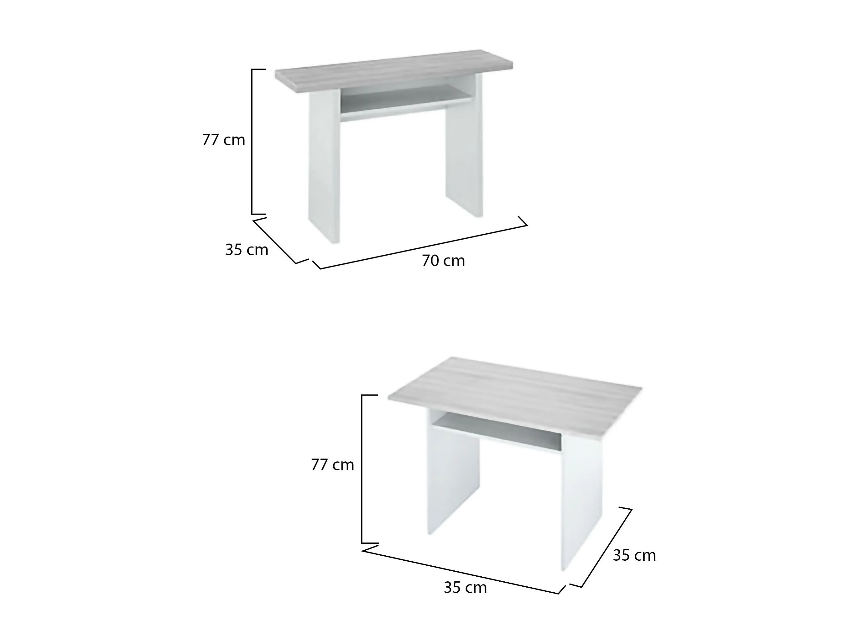 Table extensible Ddiaz, Etagère extensible avec ouverture rabattable, Table console d'appoint pliante, 120x35h77 cm, Blanc et Ciment