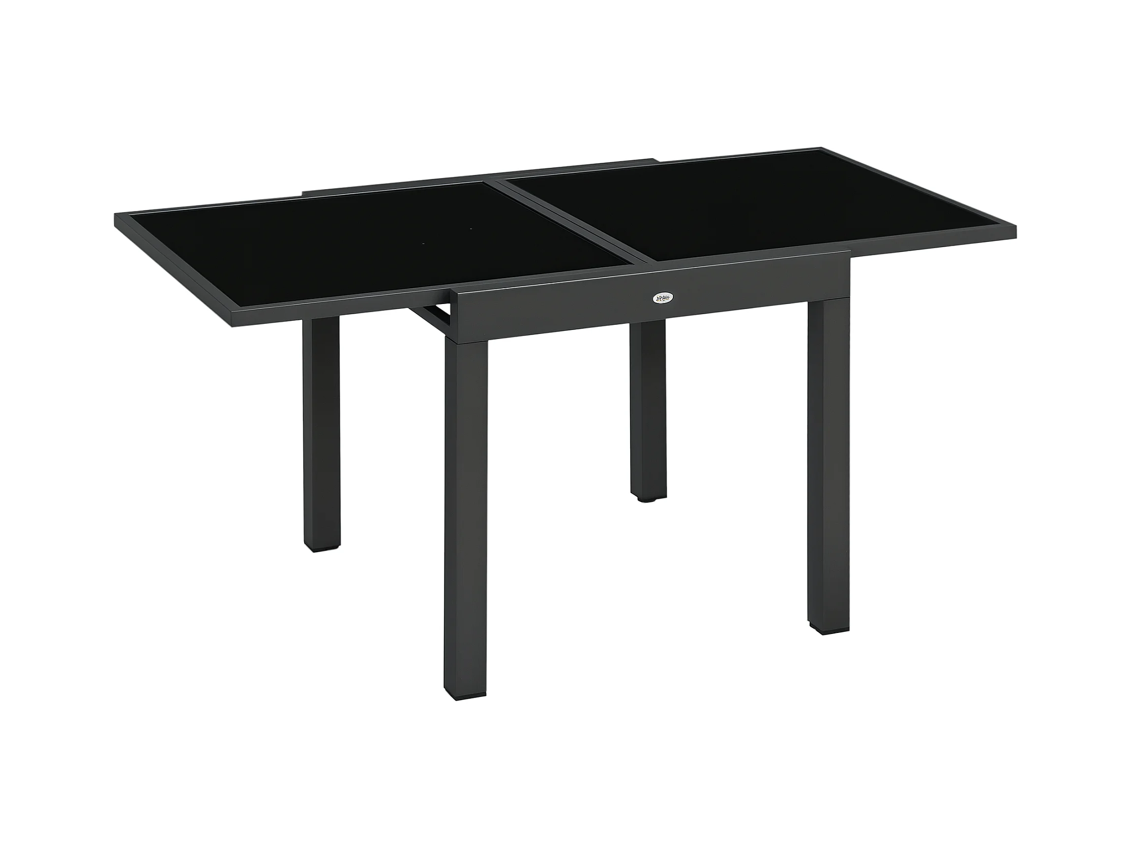 Table extensible de jardin grande taille dim. dépliées 160L x 80l x 75H cm alu métal époxy anthracite plateau verre trempé noir