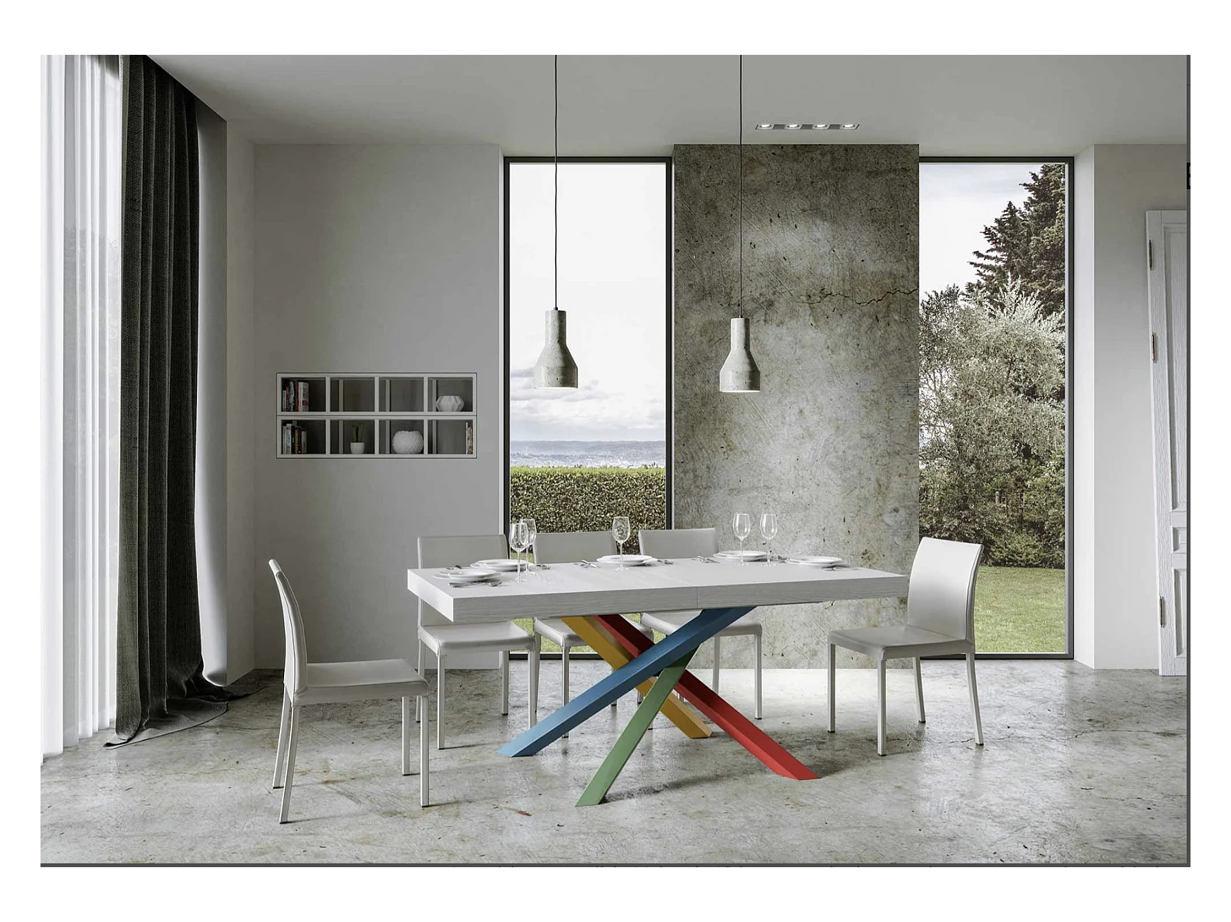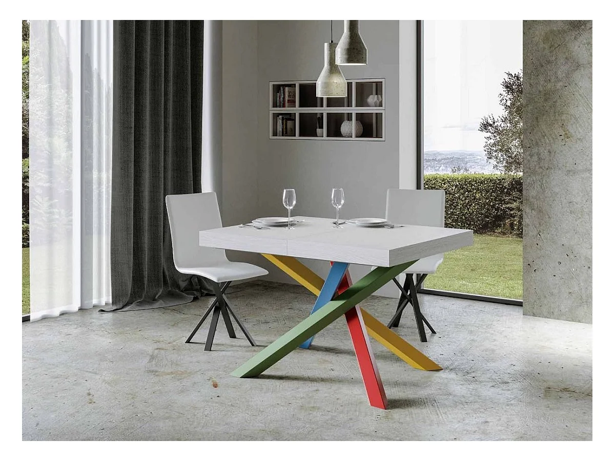 Table extensible design avec pieds entrelacés multicouleurs Artemis-Couleur Blanc-130 à 234cm