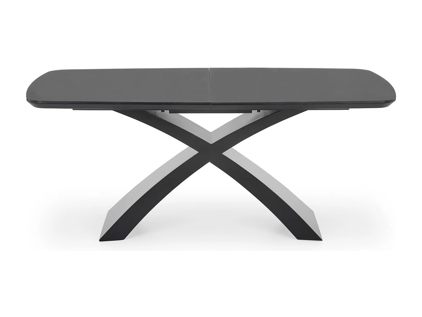 Table extensible en verre grisavec pieds en acier noir 180/220 x 89 cm