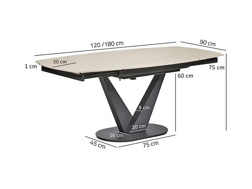 Table extensible ovale 120 à 180 cm céramique effet bois - MARSHALL