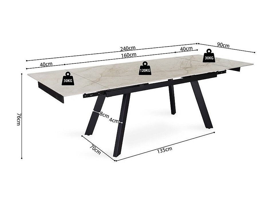 Table extensible LAROS – 160 à 240 cm – Plateau en pierre marbré beige – Structure métal – Design haut de gamme