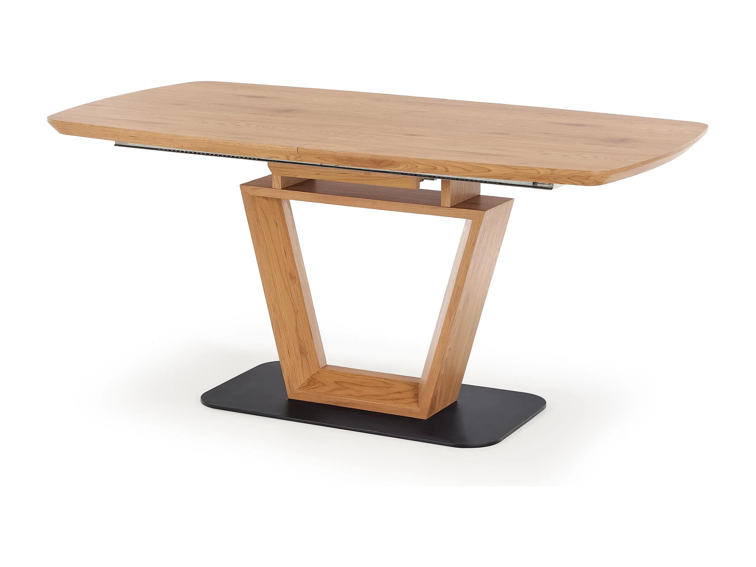 Table extensible MDF laqué blanc pieds bois naturel 160/200×90 cm