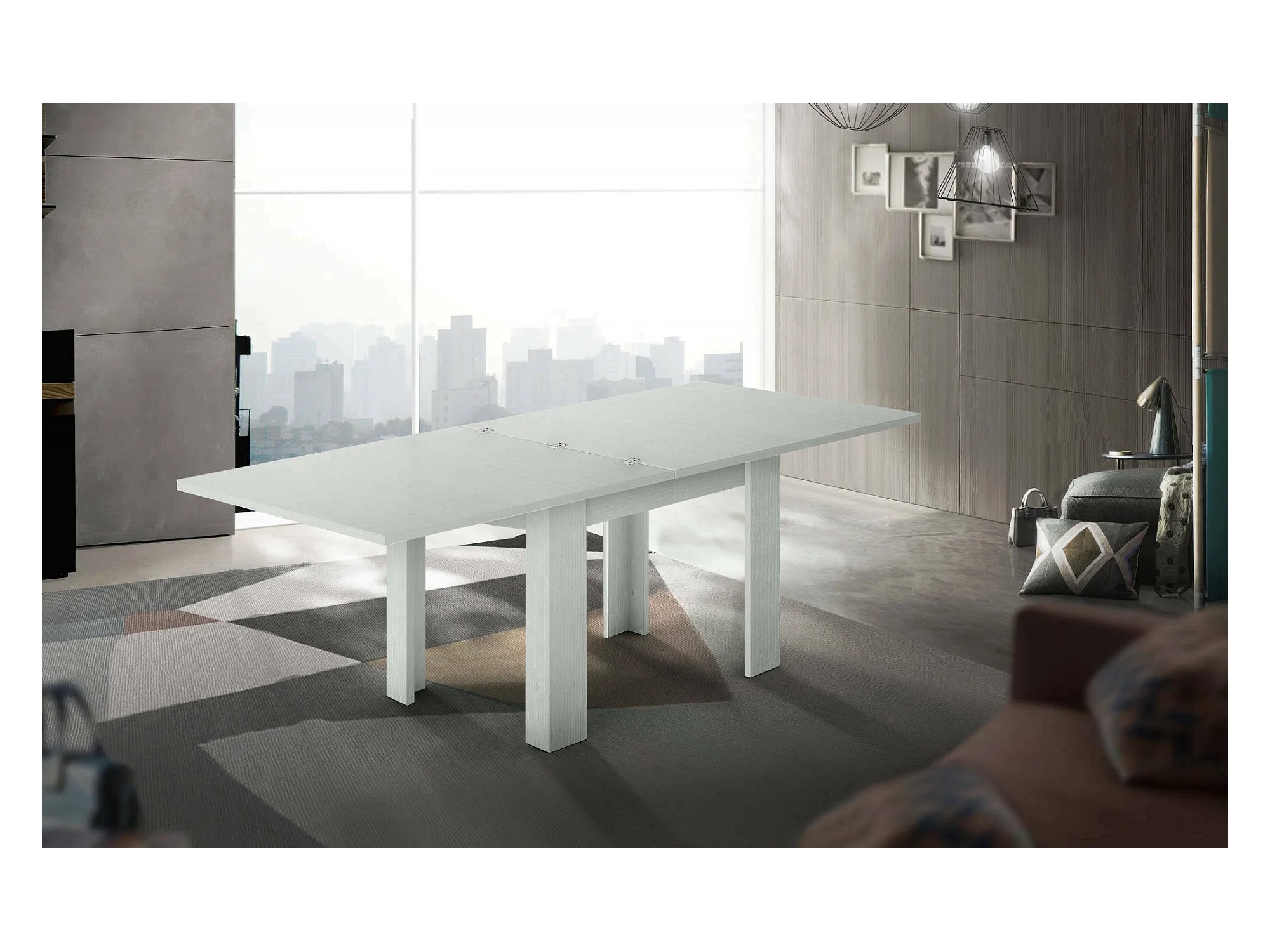 Table extensible Otto, Console auxiliaire de cuisine, Table extensible, 100% Made in Italy, 90x90h75 cm, Mélèze blanc brillant