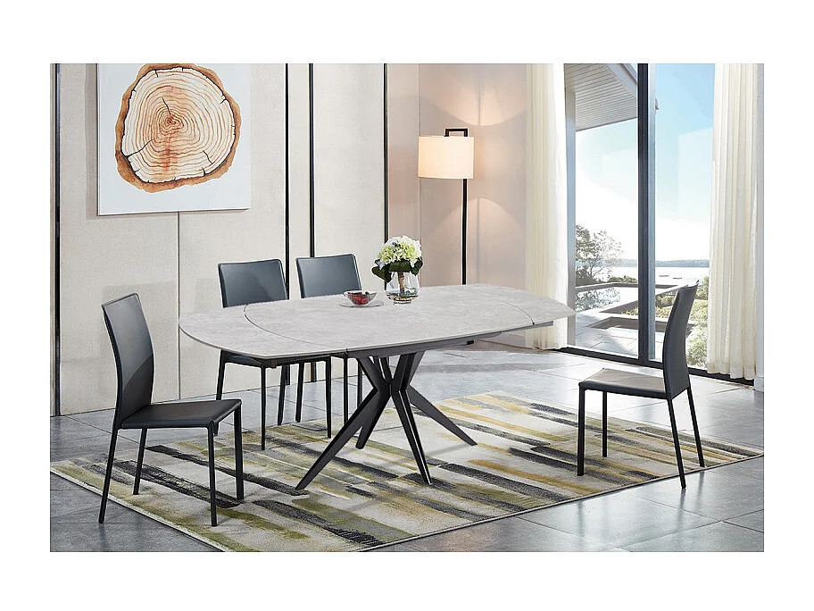 Table extensible ovale 130 à 190 cm en céramique gris béton - ADELE