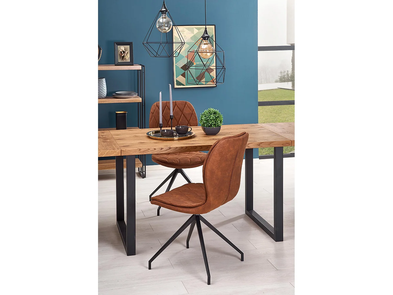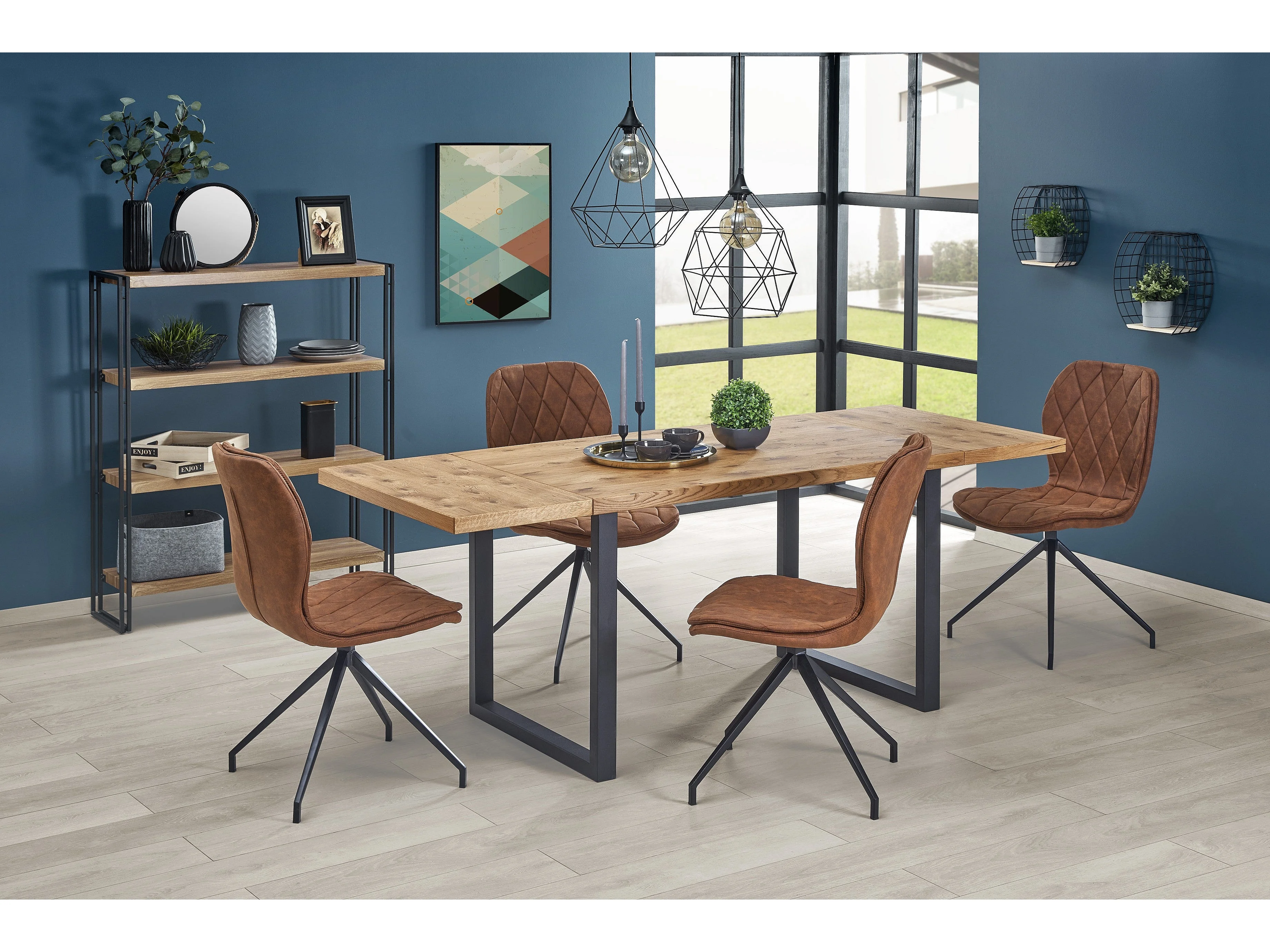 Table extensible placage chêne pieds acier noir 126/206×80 cm