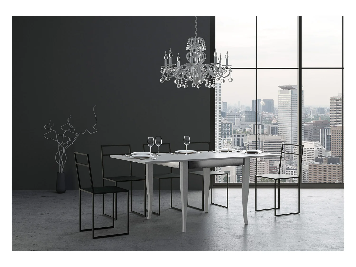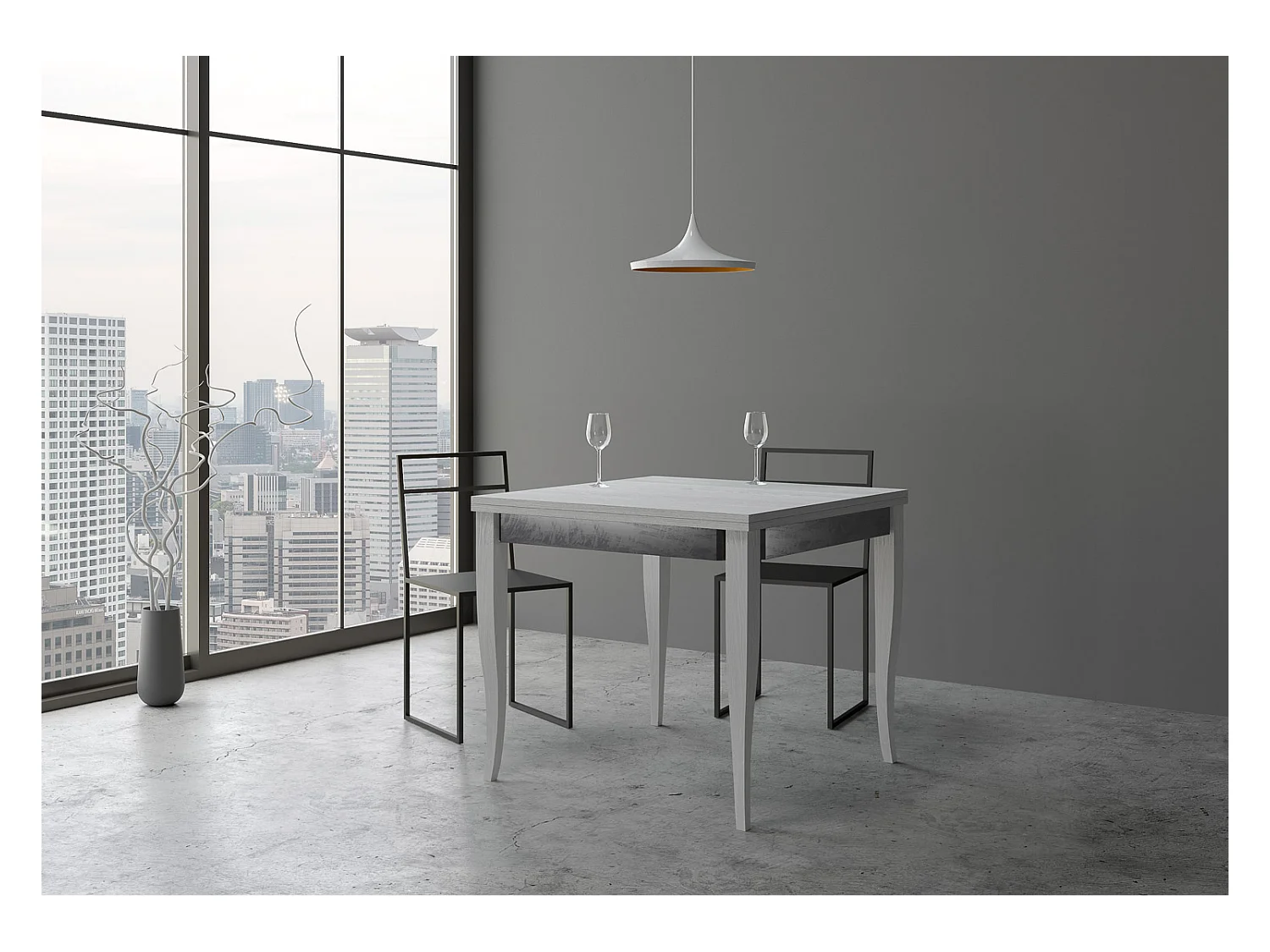 Table extensible portefeuille 90x90/180 cm Sciabola Librox Frêne Blanc cadre gris