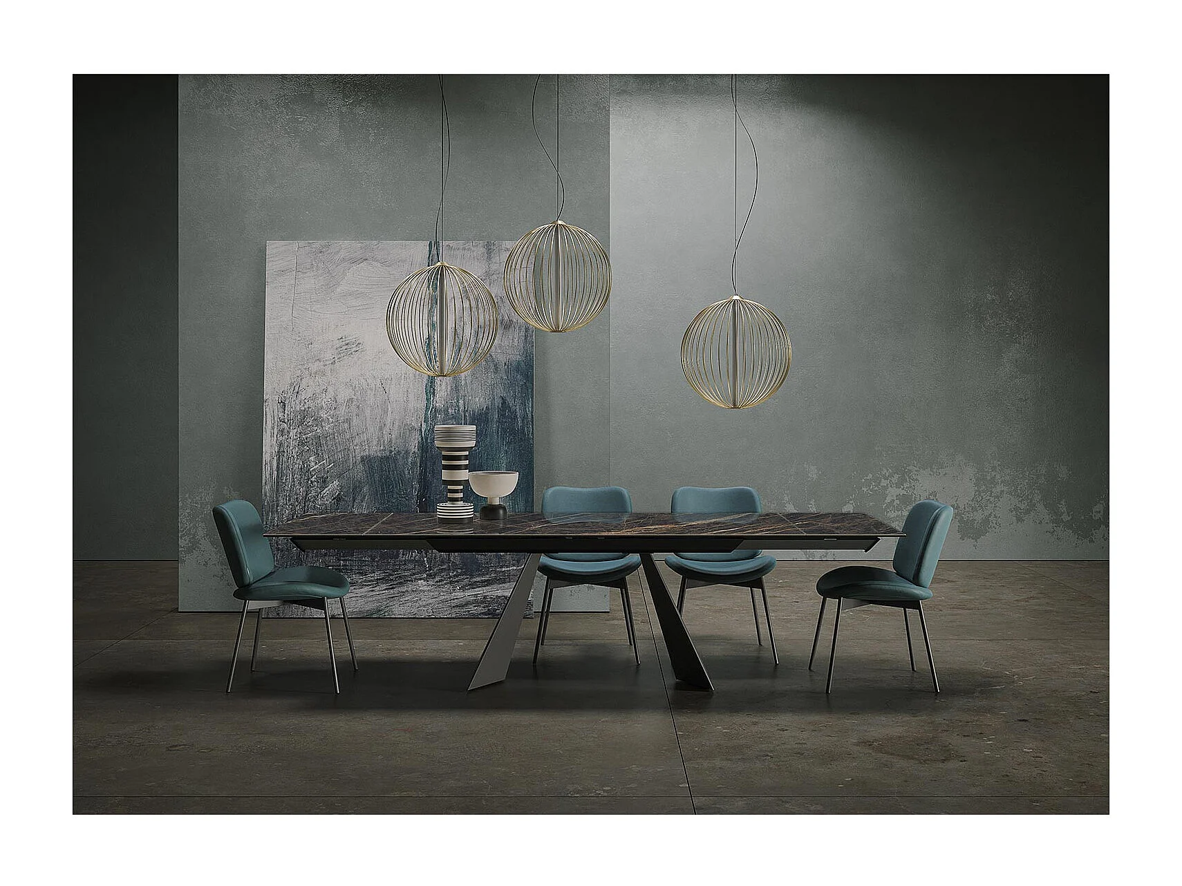 Table extensible prisma - gris charbon, rectangulaire avec bord régulier, dessus en porcelaine portoro polie