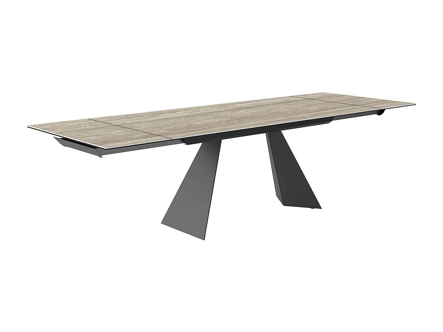 Table extensible prisma travertino - gris charbon, rectangulaire avec bord régulier, grès en travertin argenté