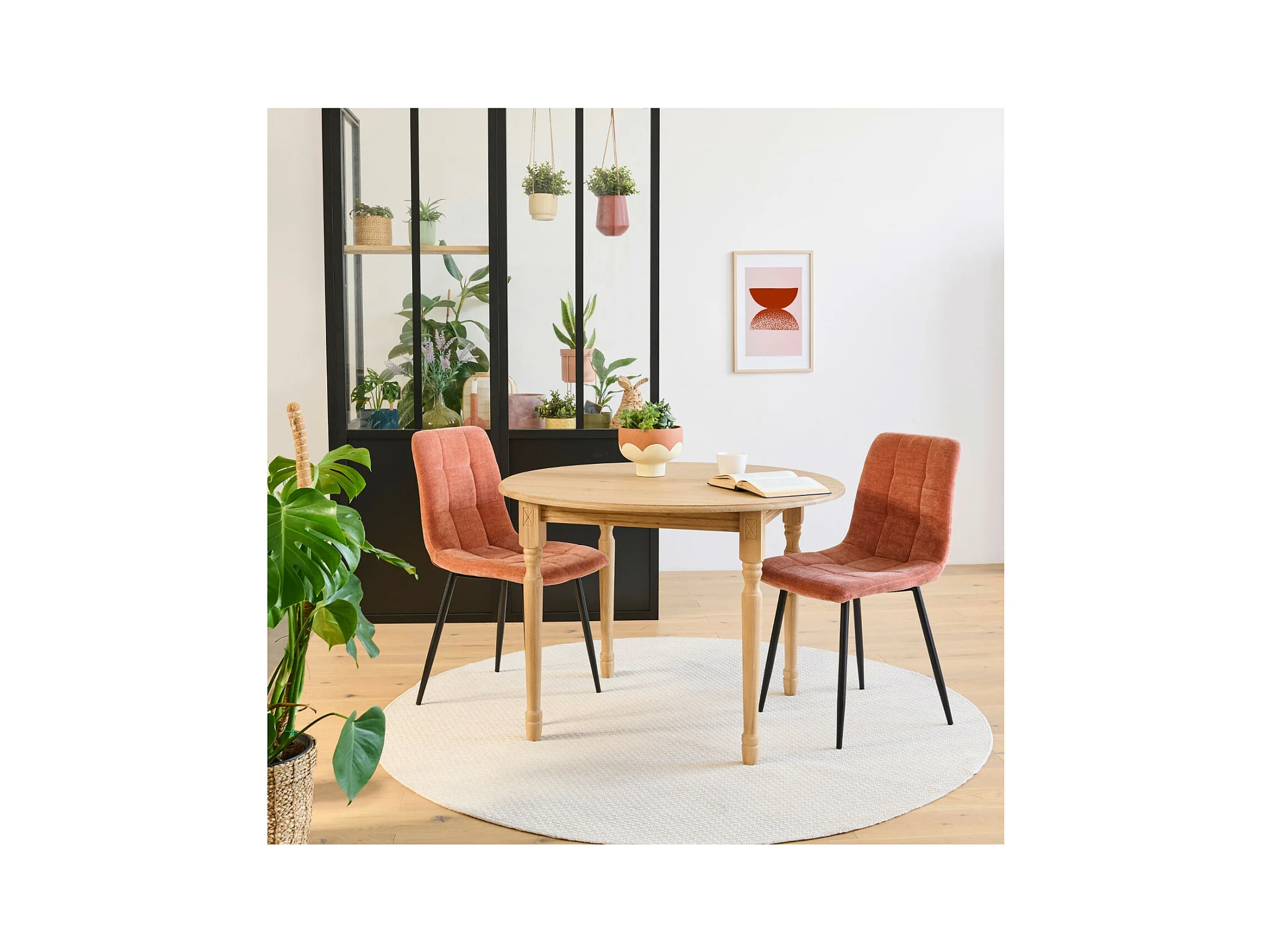 Table extensible ronde bois D105 + 1 allonge et pieds tournés - VICTORIA