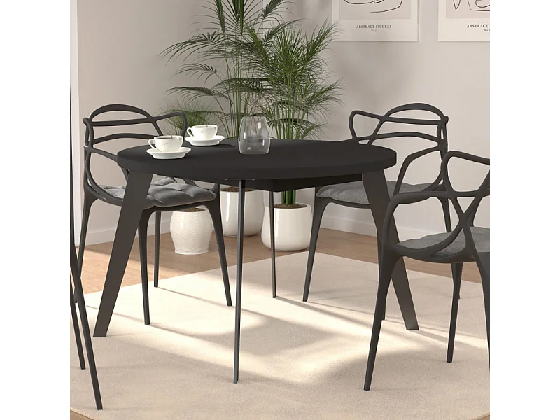 Table ronde extensible 110 à 155 cm noir pieds métal - VANESSA