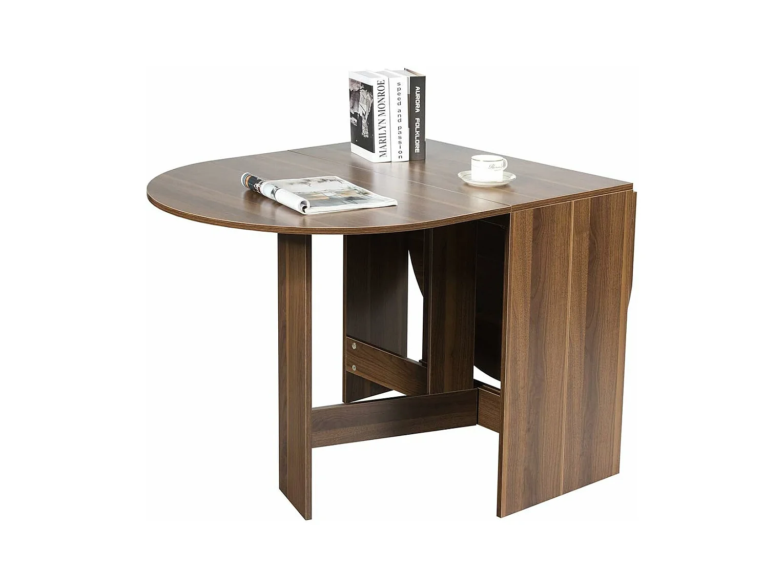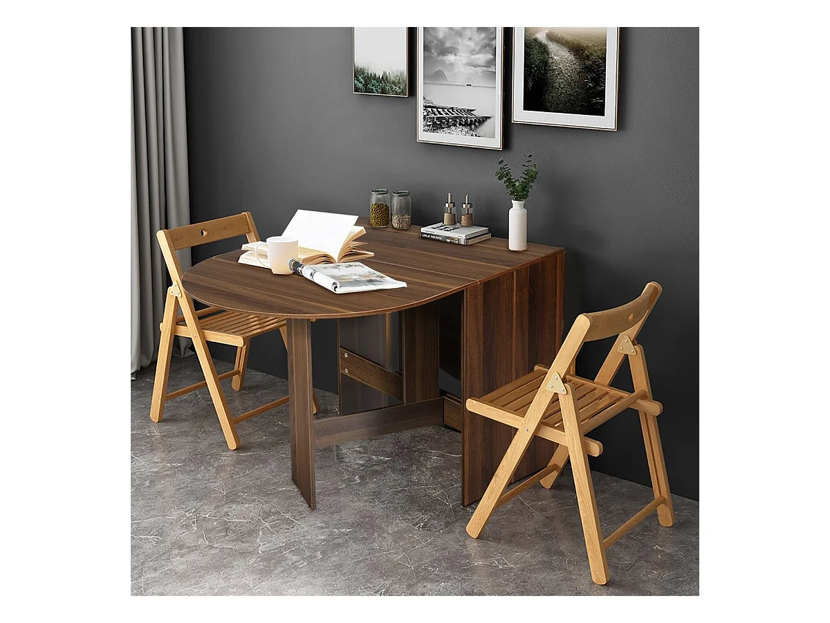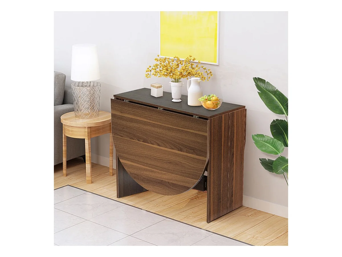Table Extensible Salle à Manger pour 4-7 Personnes, Table Ronde Convertible avec 2 Rallonges Semi-ovales Charge Max 60KG, 163 x 80 x 75CM, Marron