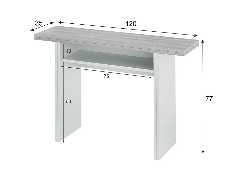 Table Extensible Système d'Ouverture en Livre de 35 à 70 cm Tavolo - L120 cm