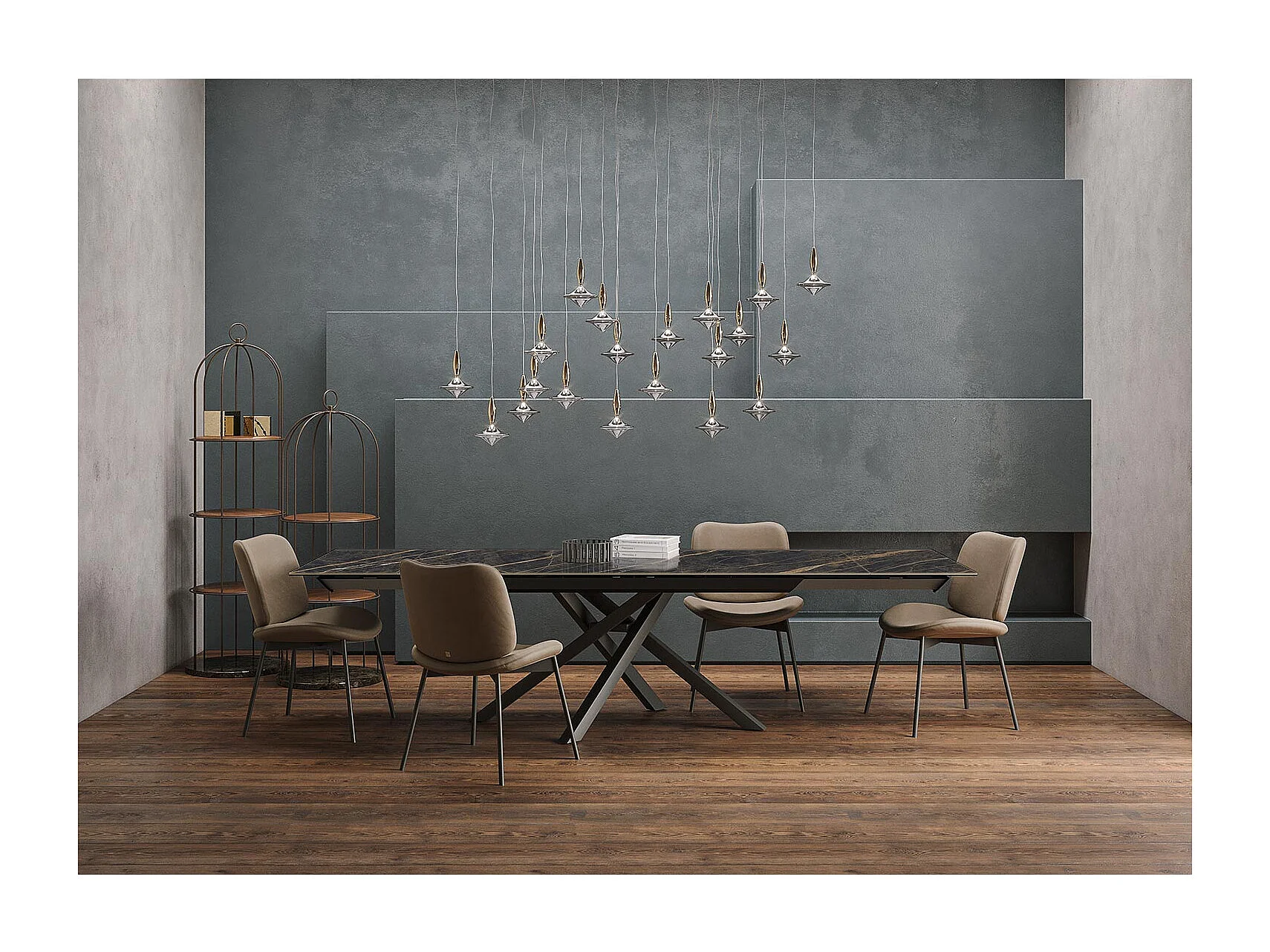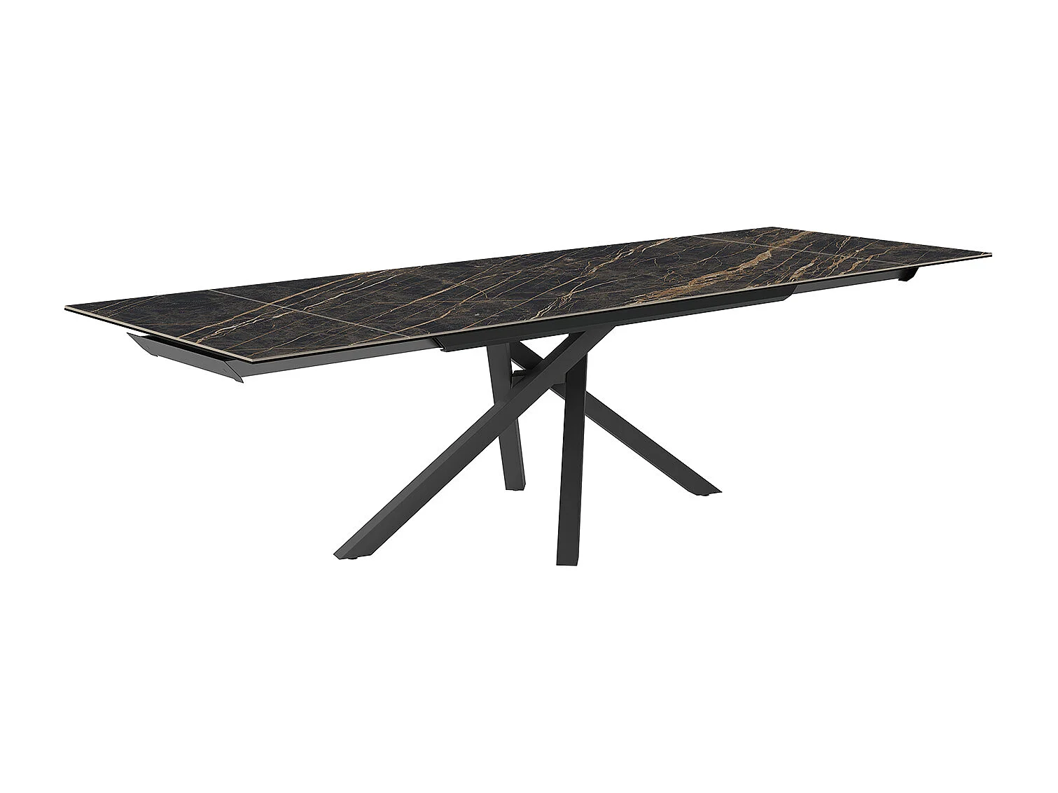 Table extensible tournante - gris charbon, rectangulaire avec bord régulier, dessus en porcelaine portoro brillante