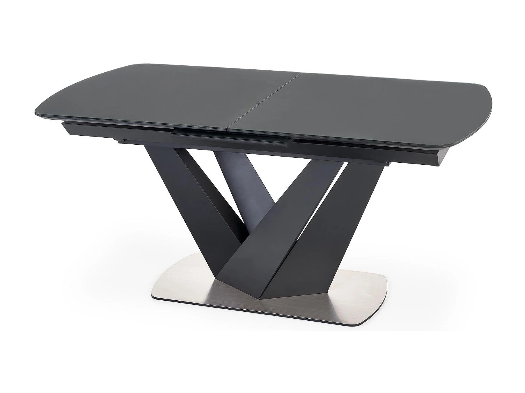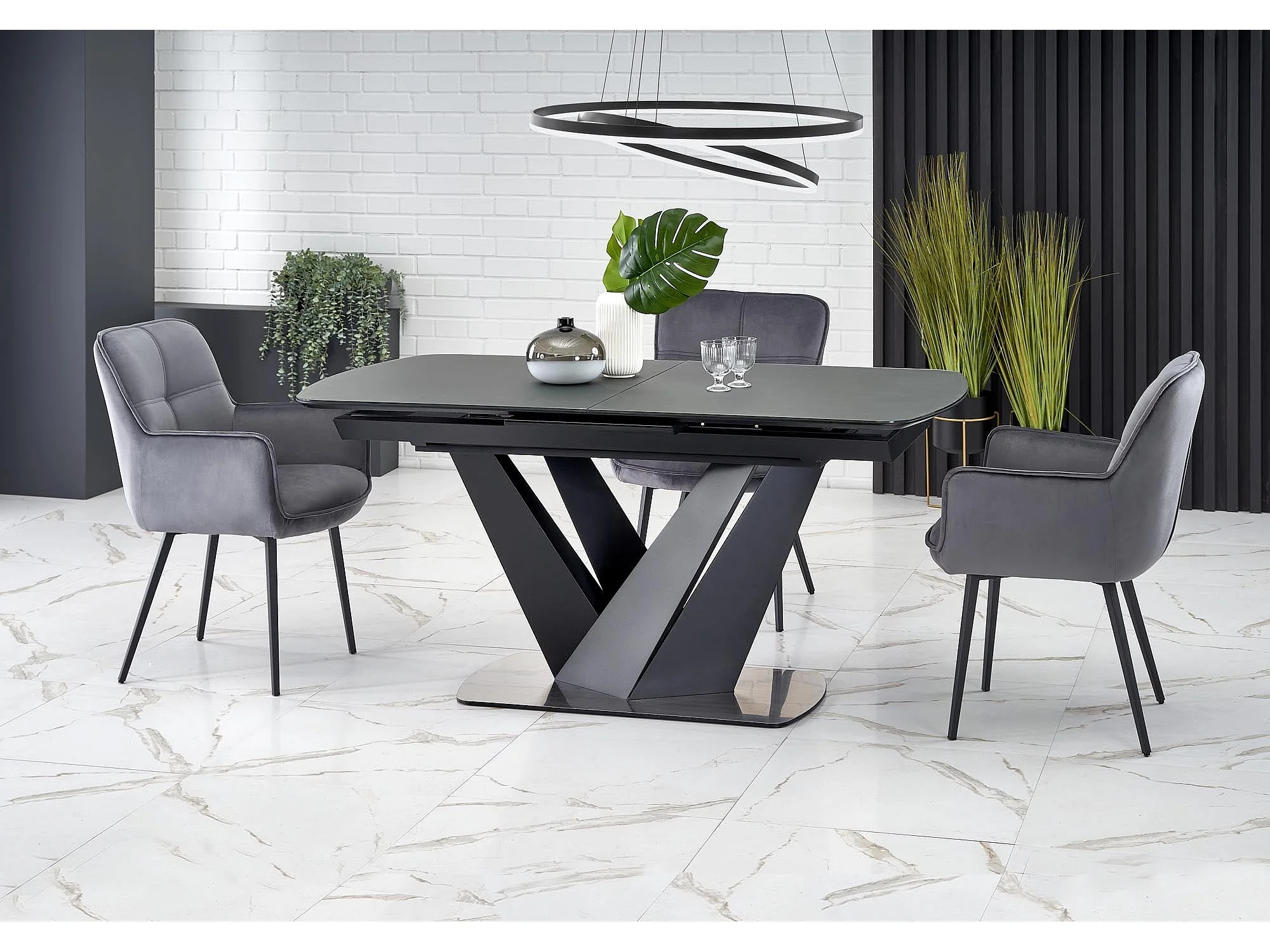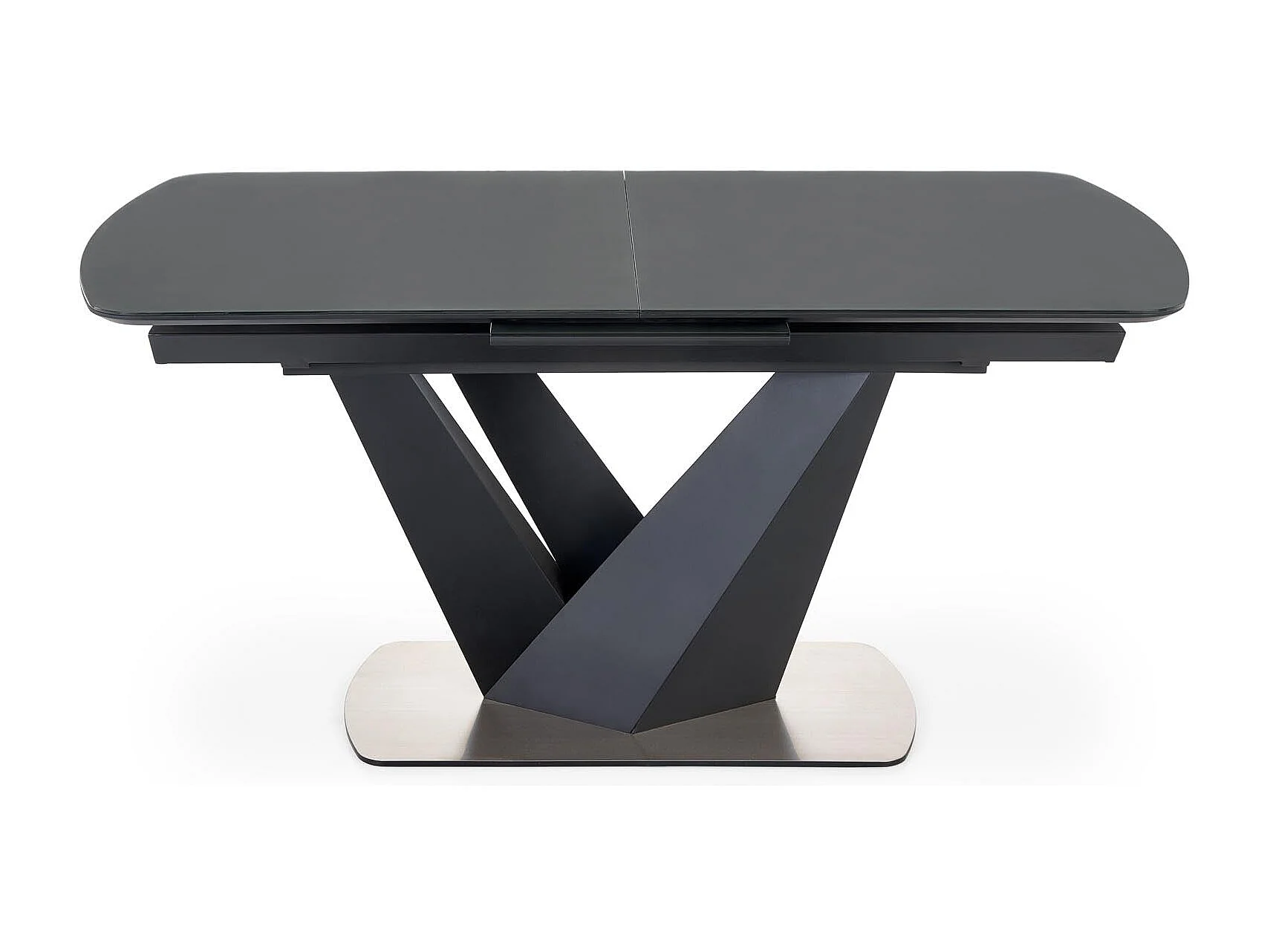 Table extensible verre gris foncé pieds acier noir 160/200×90 cm