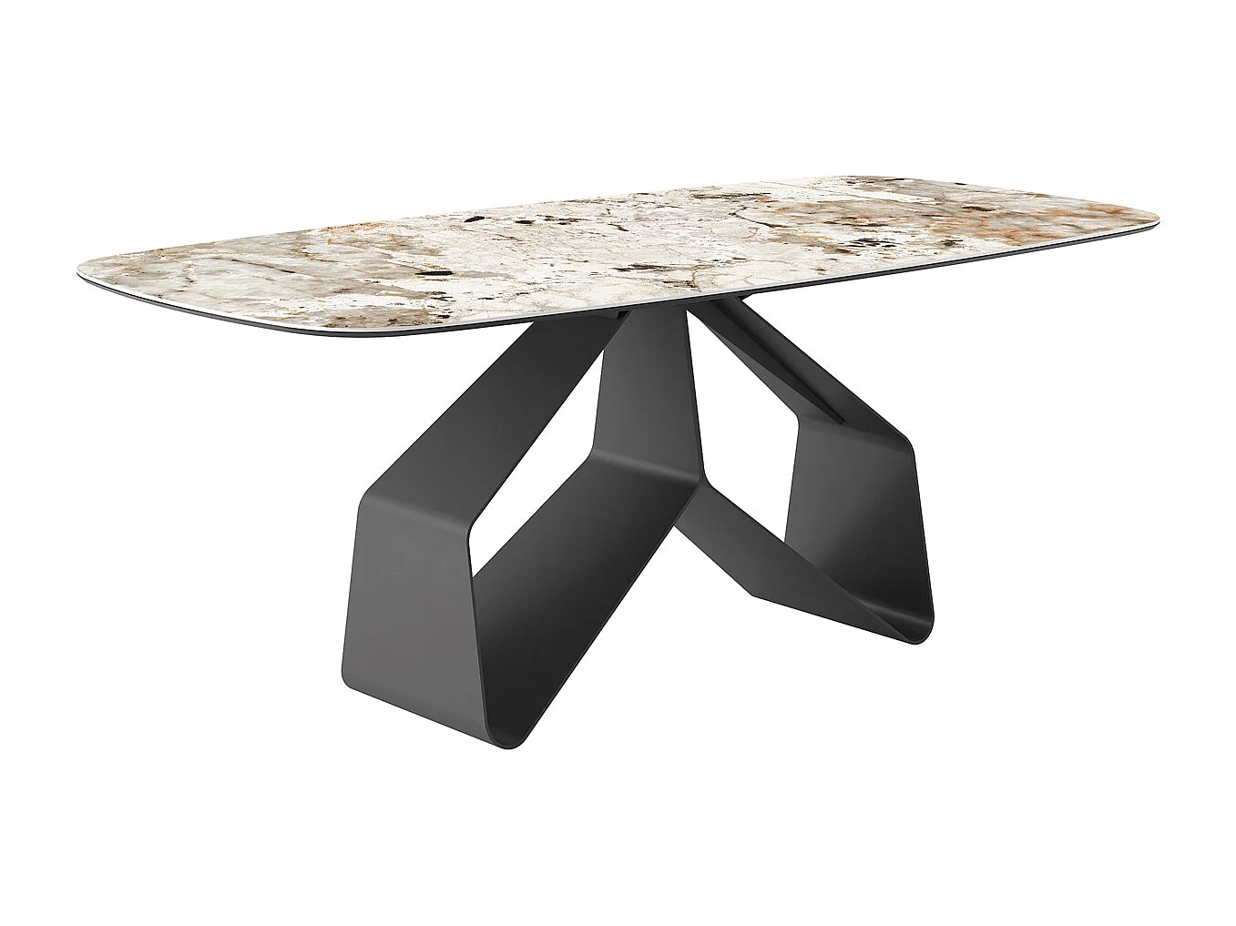 Table fixe à ruban - gris fusain, baril à bord incliné, porcelaine en toundra