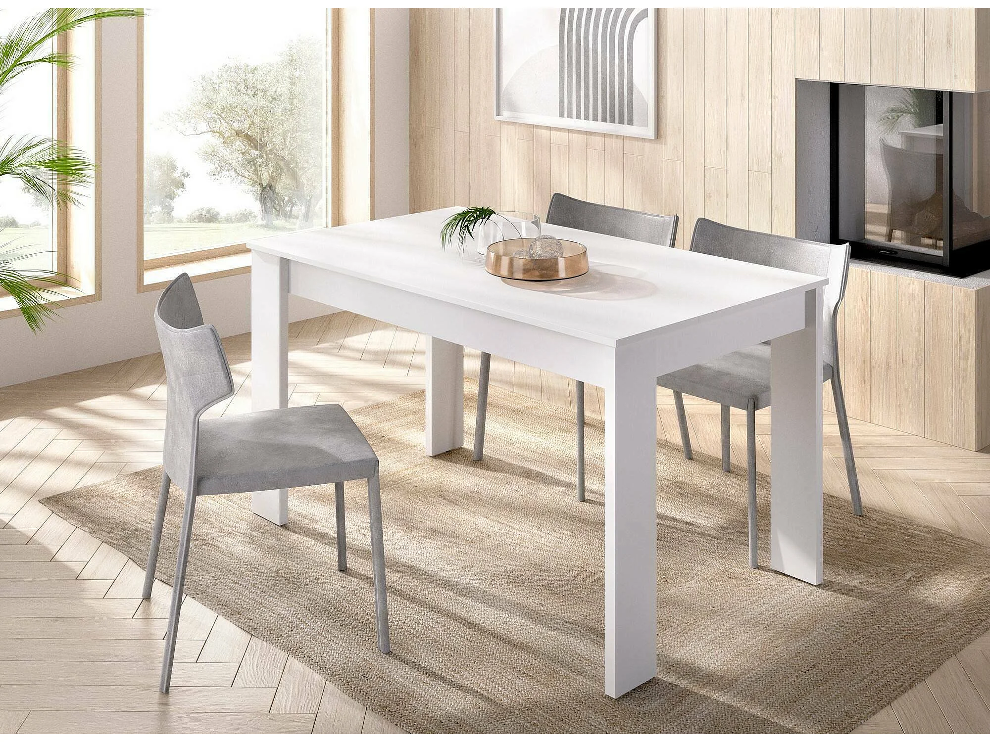 Table fixe Censo, Etagère à manger polyvalente, Table rectangulaire de cuisine ou de salle à manger, 139x81h77 cm, Blanc