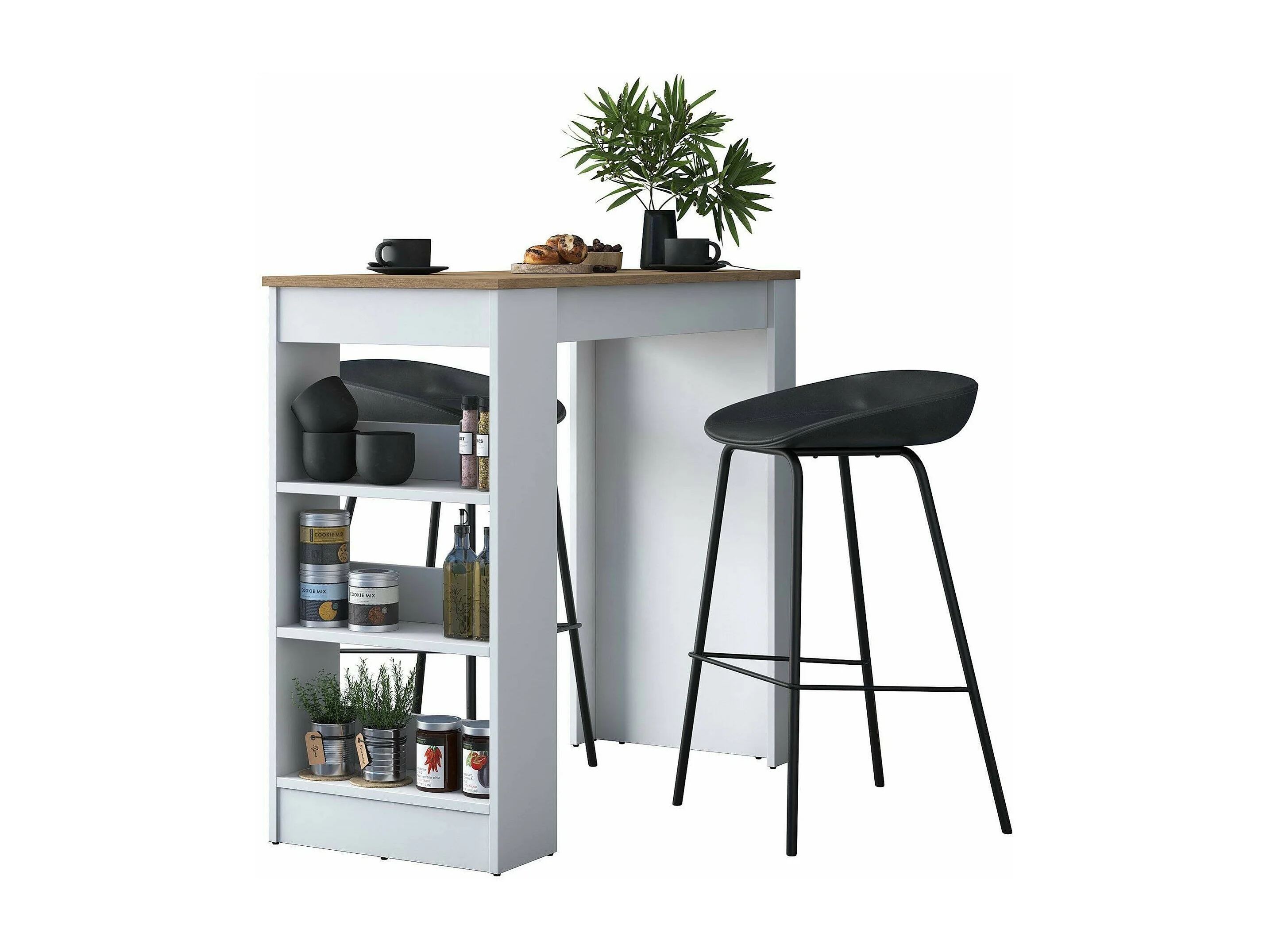 Table fixe Navi, Etagère de cuisine, Consolle à manger, Tablette rectangulaire fixe, 120x50h100 cm, Noyer et Blanc