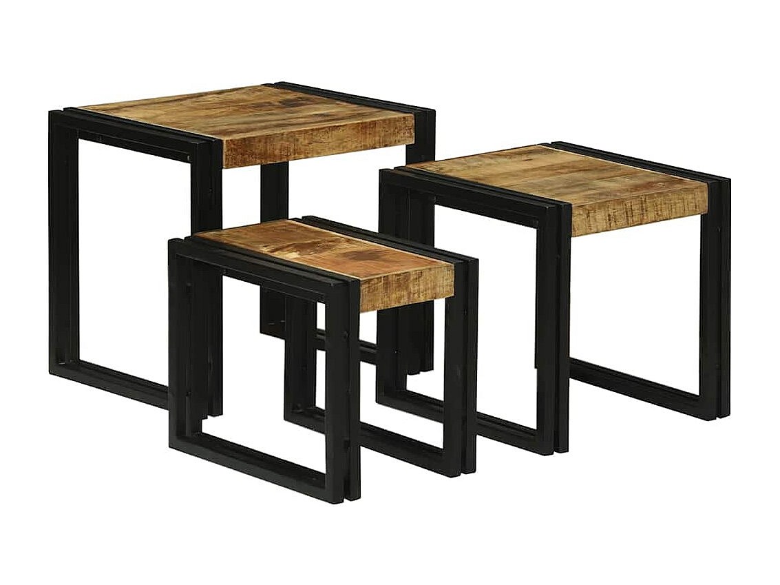 Tables basses gigognes 3pcs bois de manguier massif brut et fer FR725180