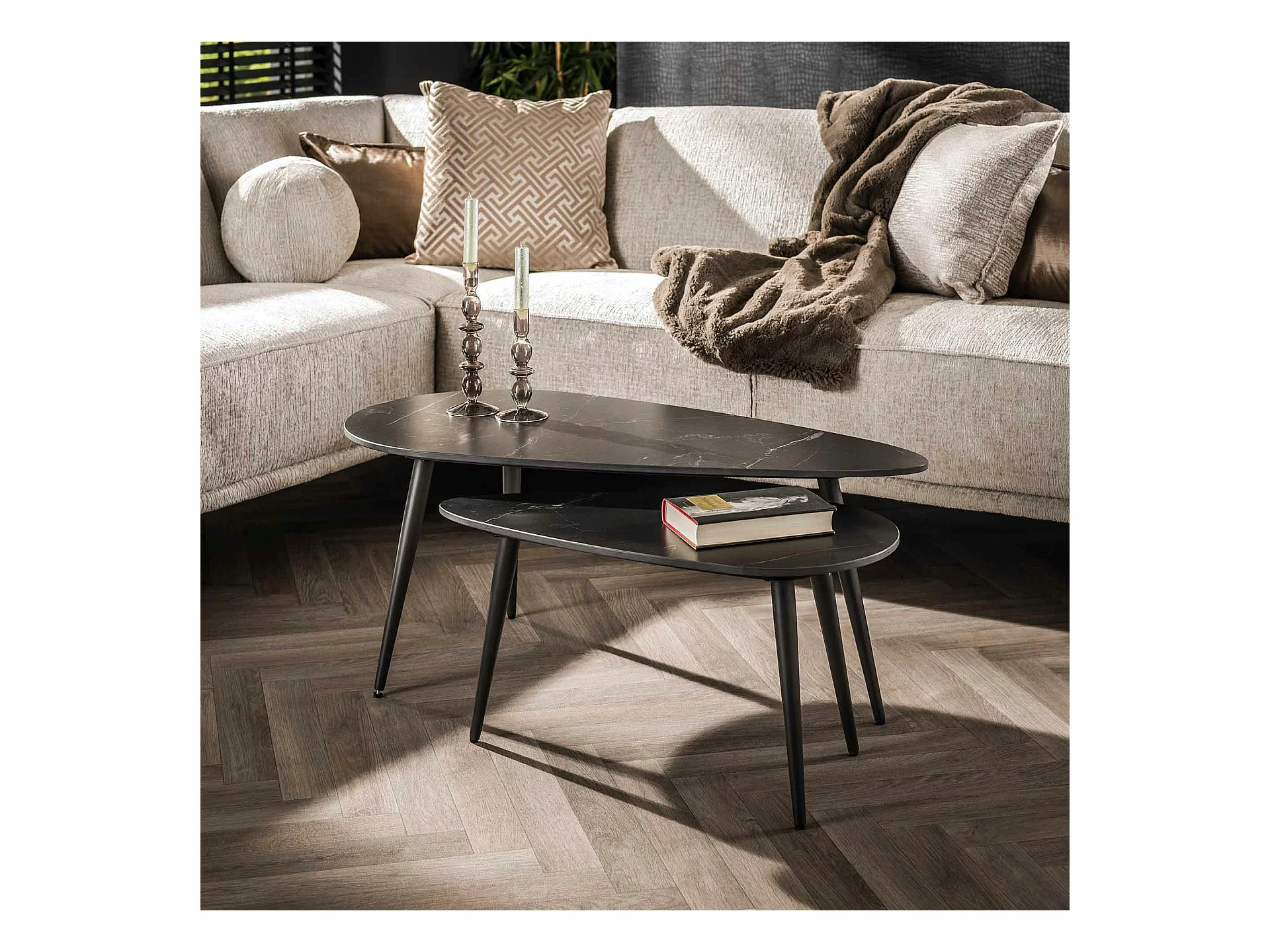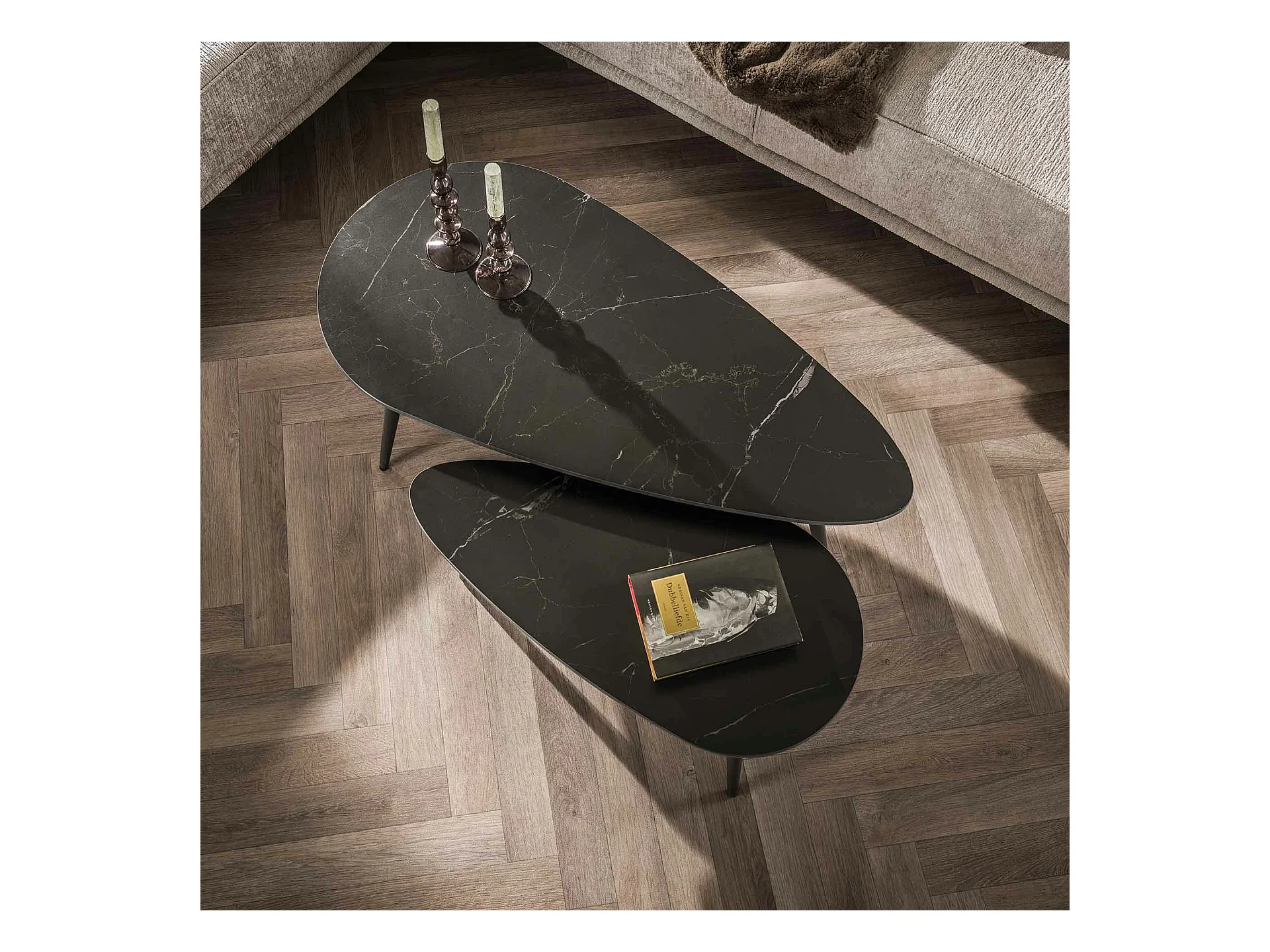 Table gigogne en céramique noire forme triangulaire (lot de 2) GALWAY
