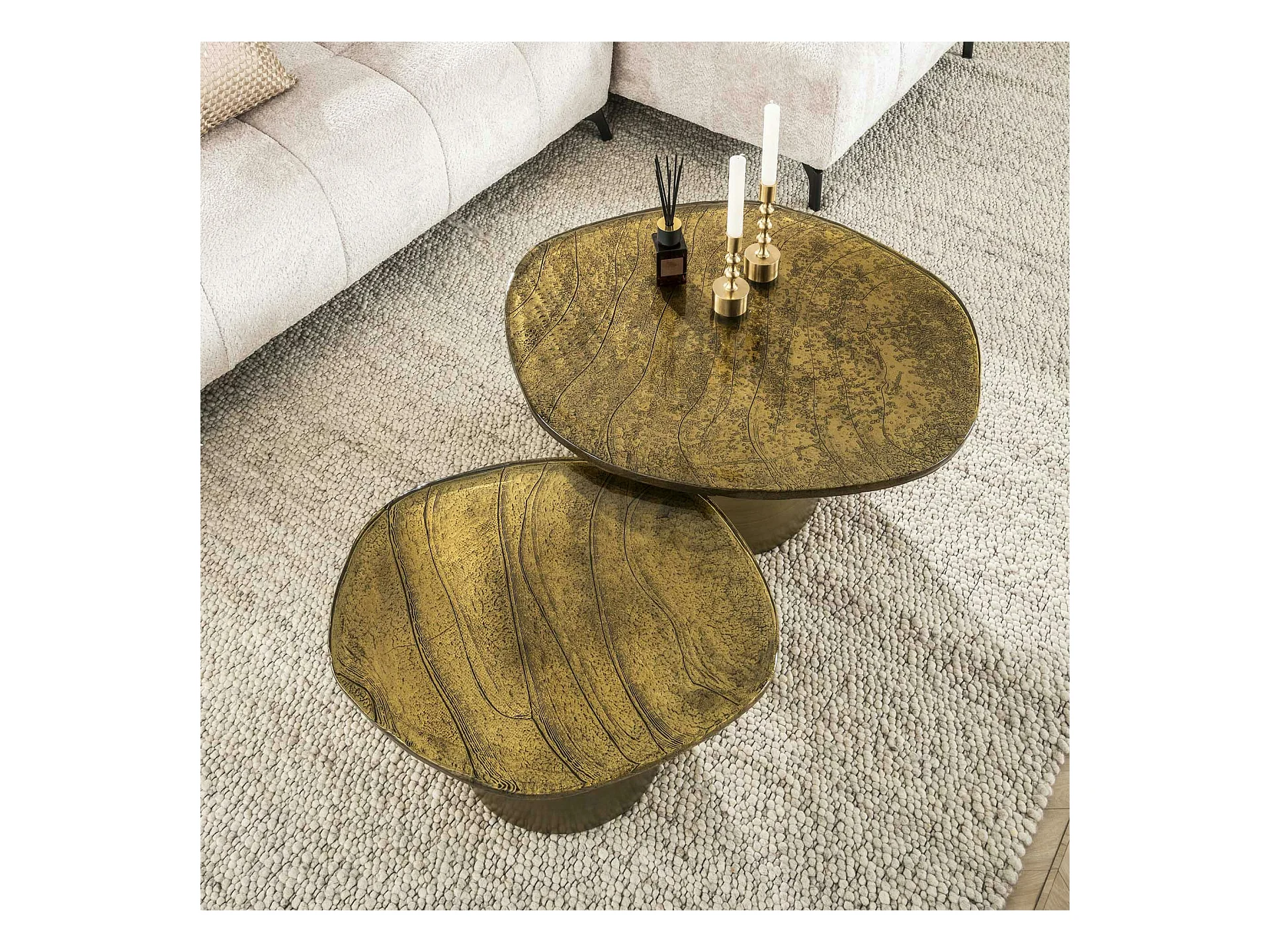Table gigogne en verre – finition antique dorée (lot de 2) LAGUNA