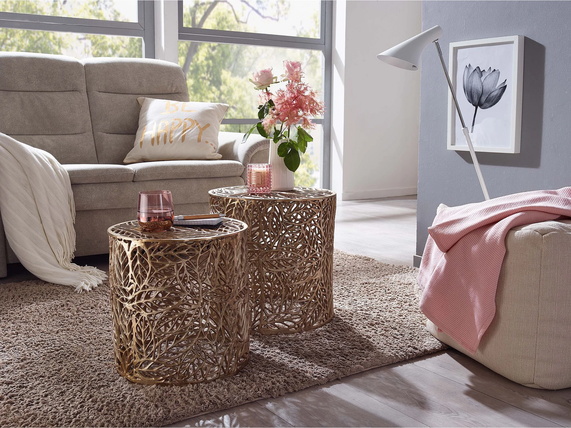 Table d'appoint Lot de 2 Petite Table Basse de Salon Métal Moderne Or