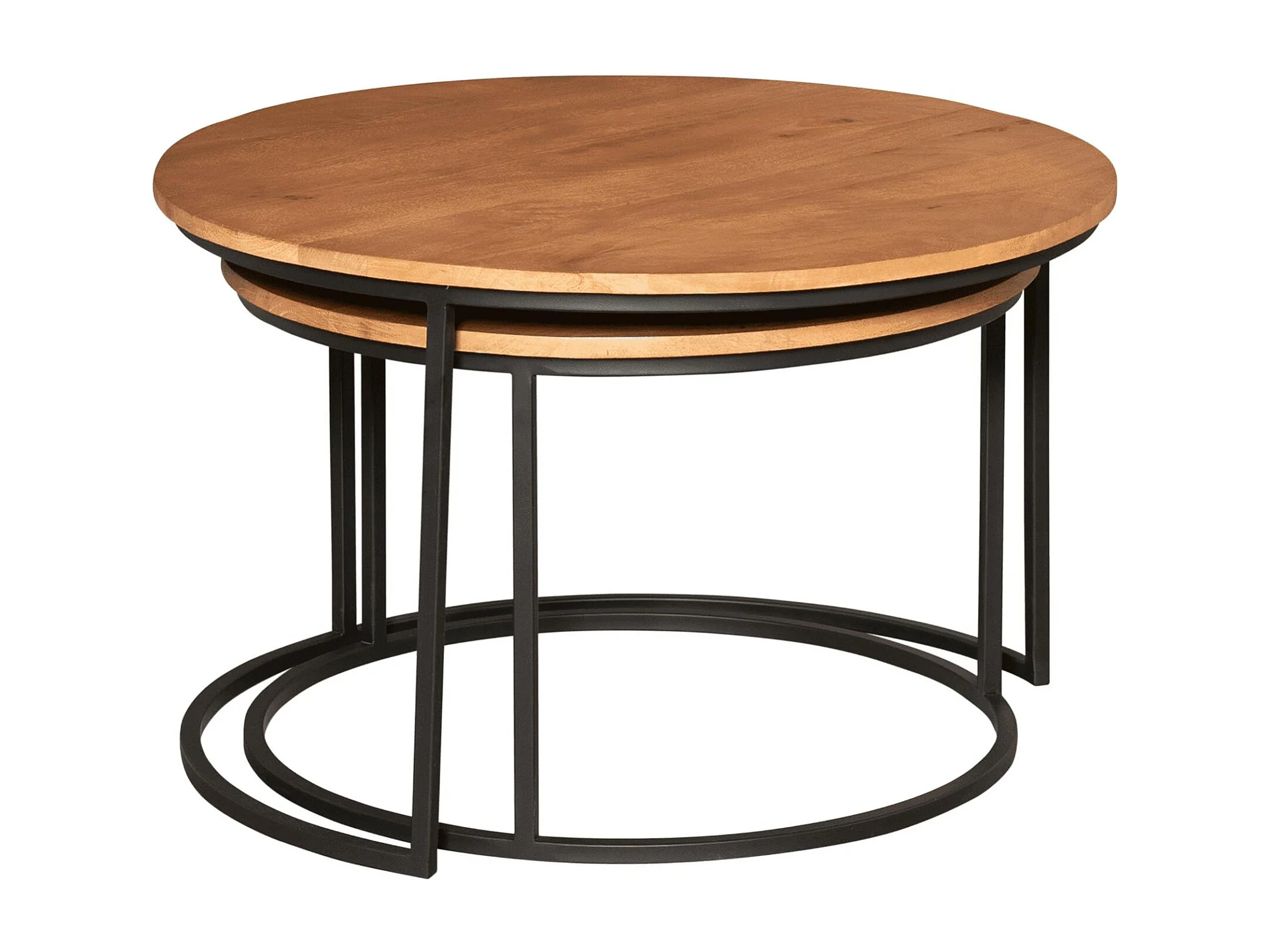 Table gigogne ronde en bois clair et métal noir (lot de 2) RIVANO