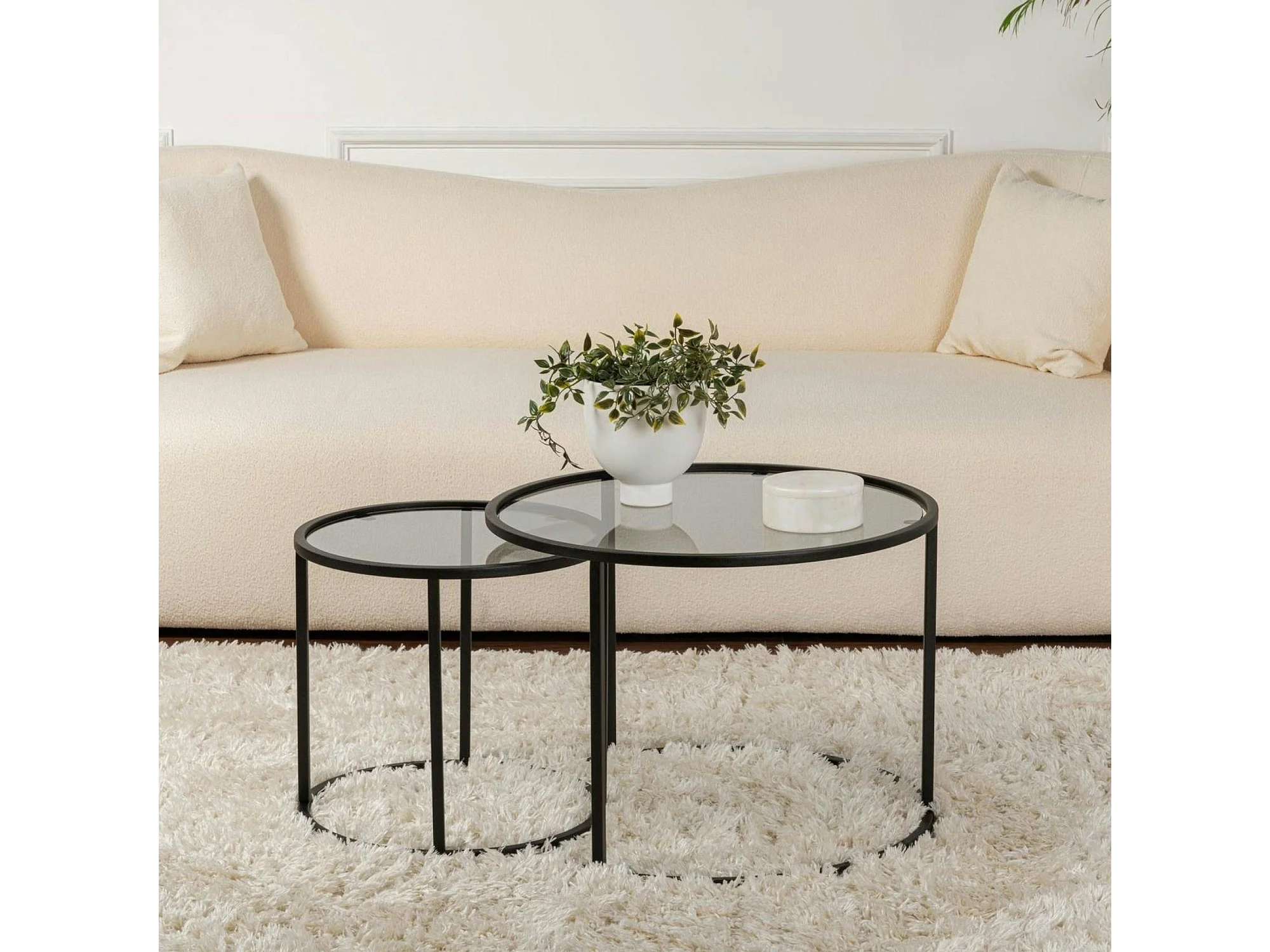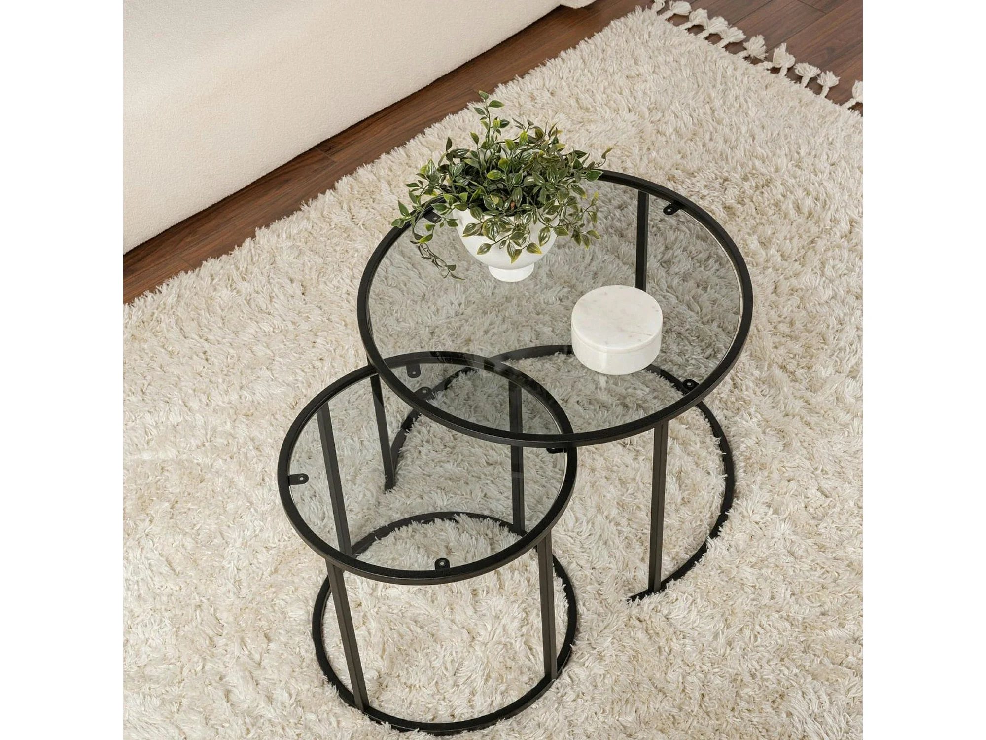 Table gigogne en verre - cadre noir (lot de 2) ⌀60 cm TULUM