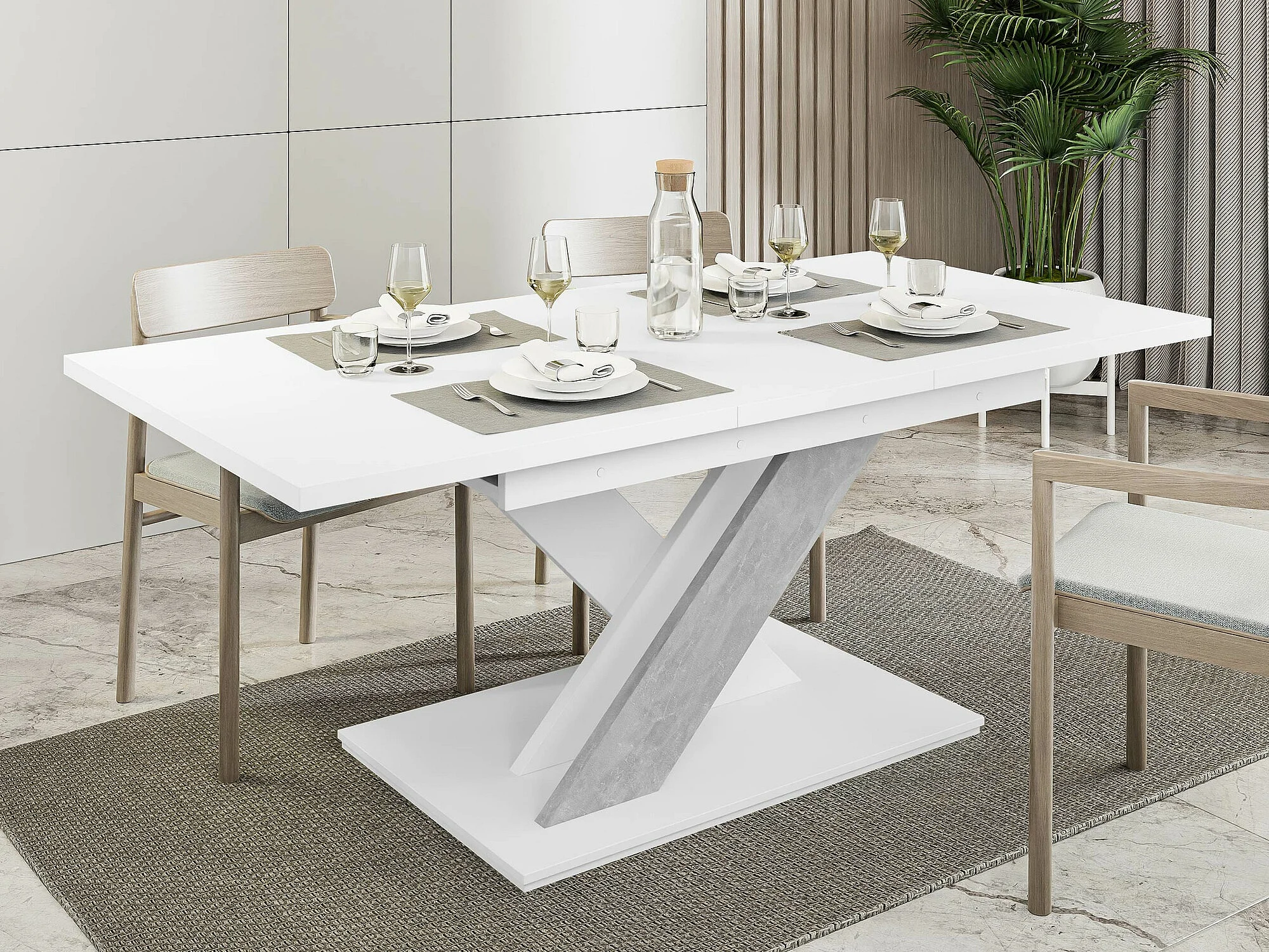 Table Goodyear 103, Béton|Blanc, 76x80x140cm, Disponible, Stratifié