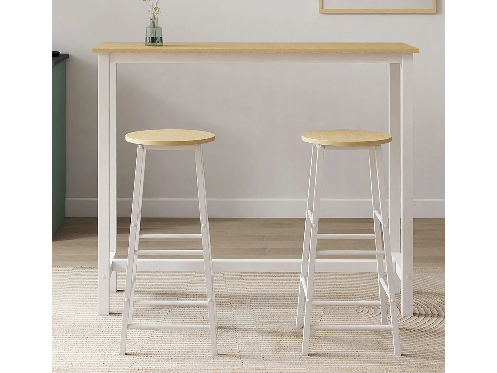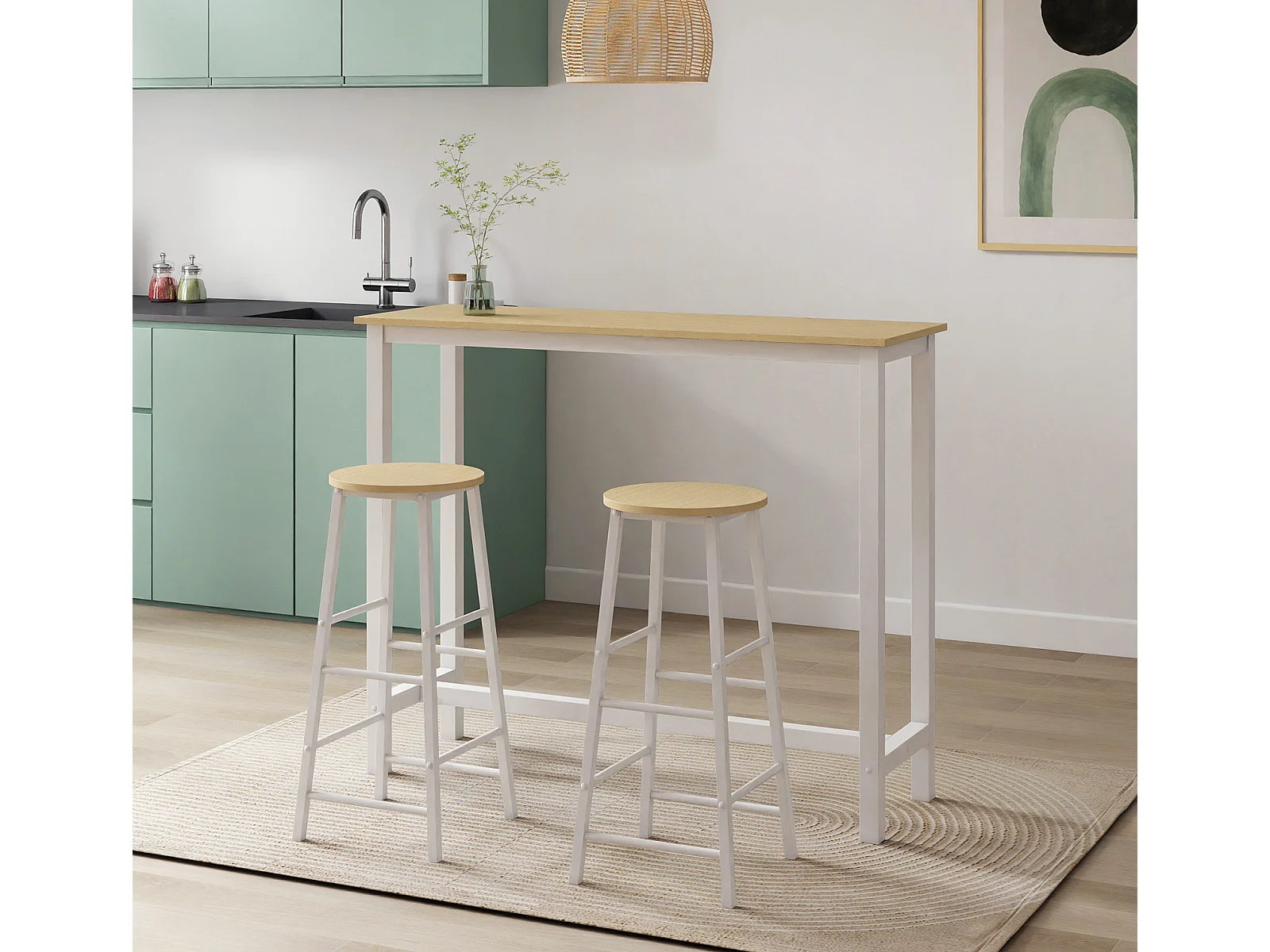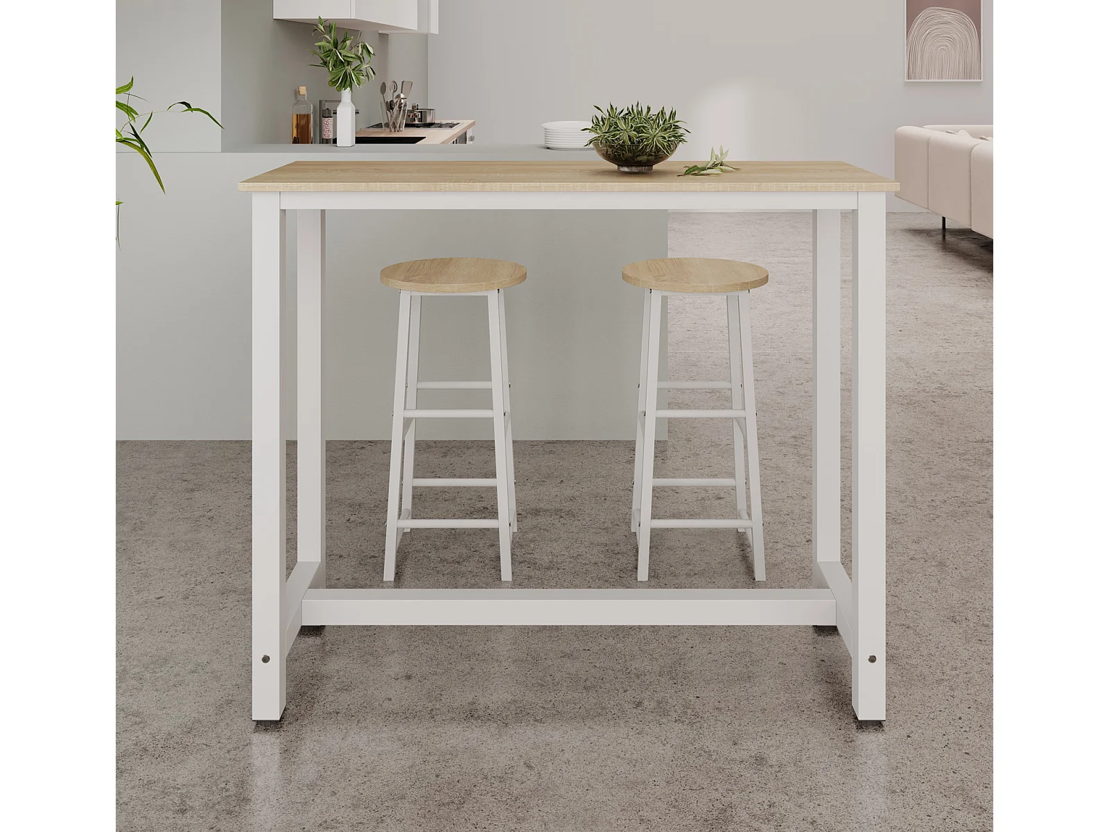 Table haute avec 2 tabourets en Blanc et Sonoma 120x40x100cm Ani