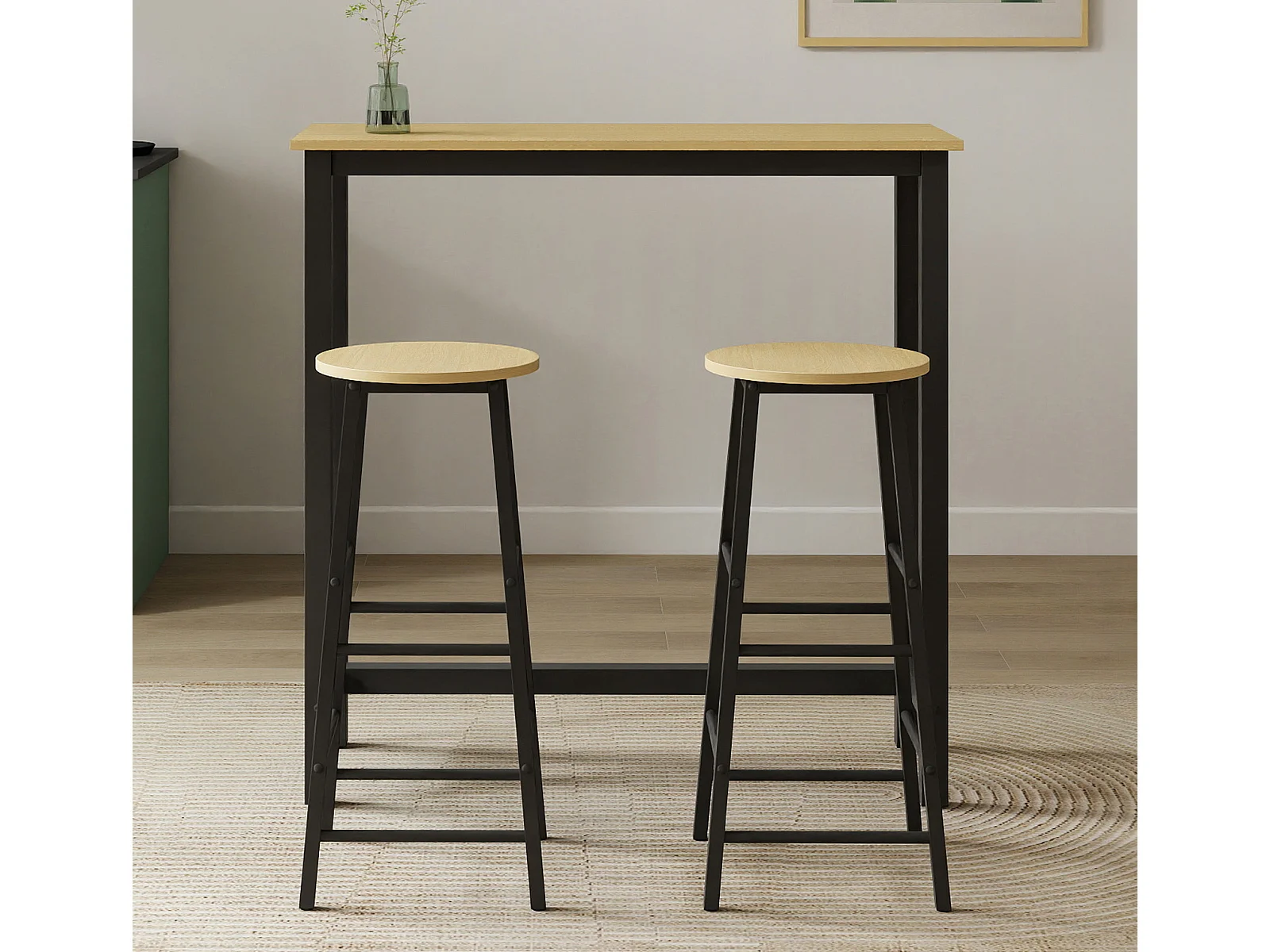 Table haute avec 2 tabourets en Noir et Sonoma 100x40x100cm Ani