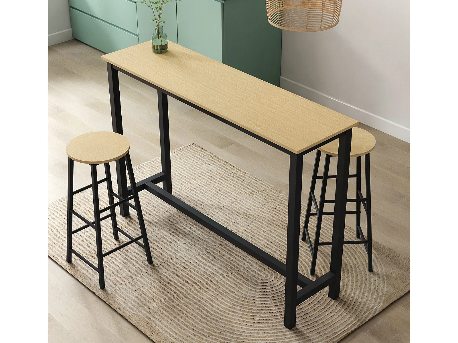 Table haute avec 2 tabourets en Noir et Sonoma 120x40x100cm Ani