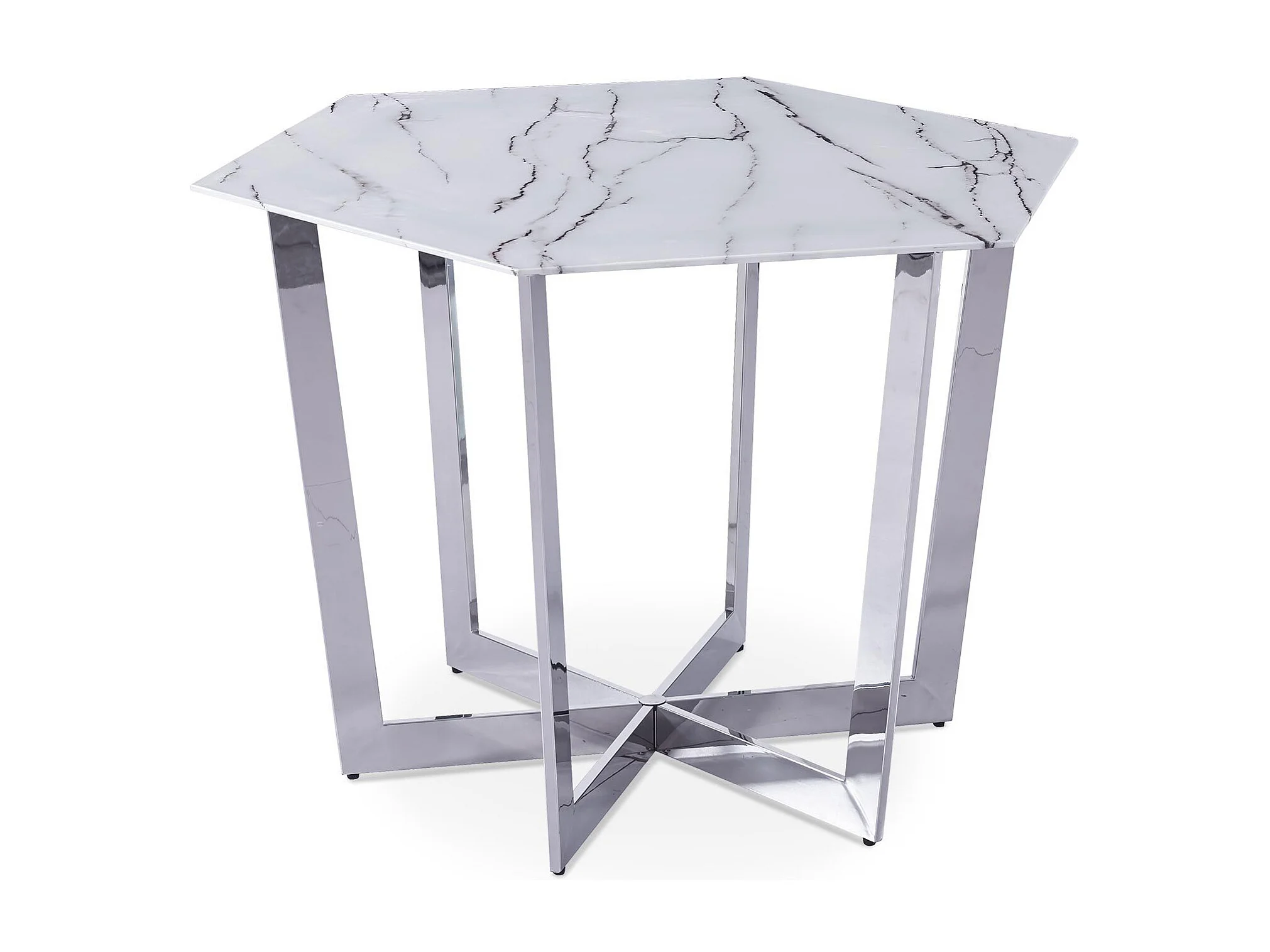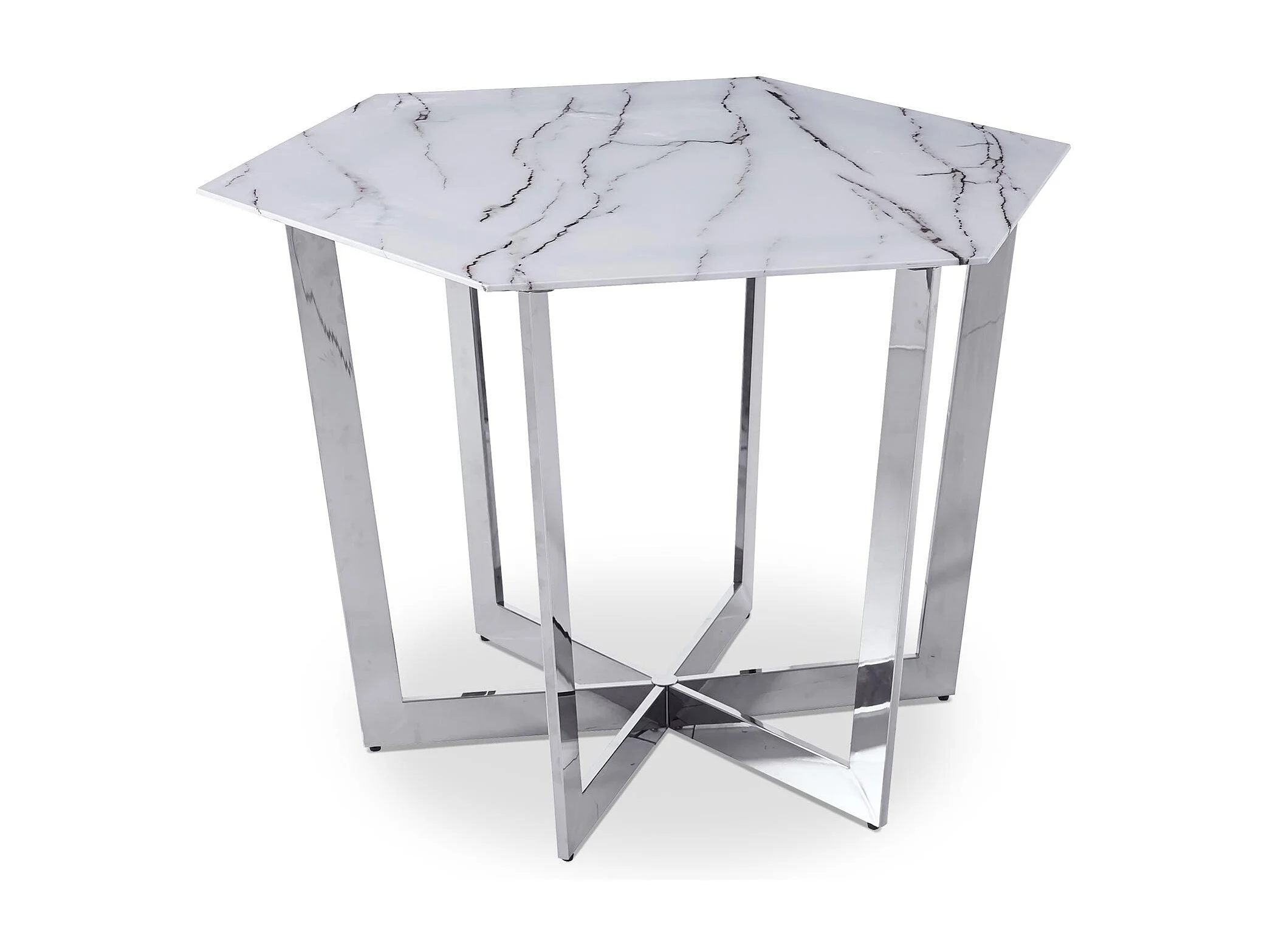 Table de Repas Design "Dizazi" 120cm Blanc & Argent