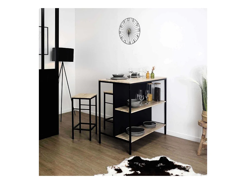 Table Ilot 2 Tabourets Loka Marron, Noir