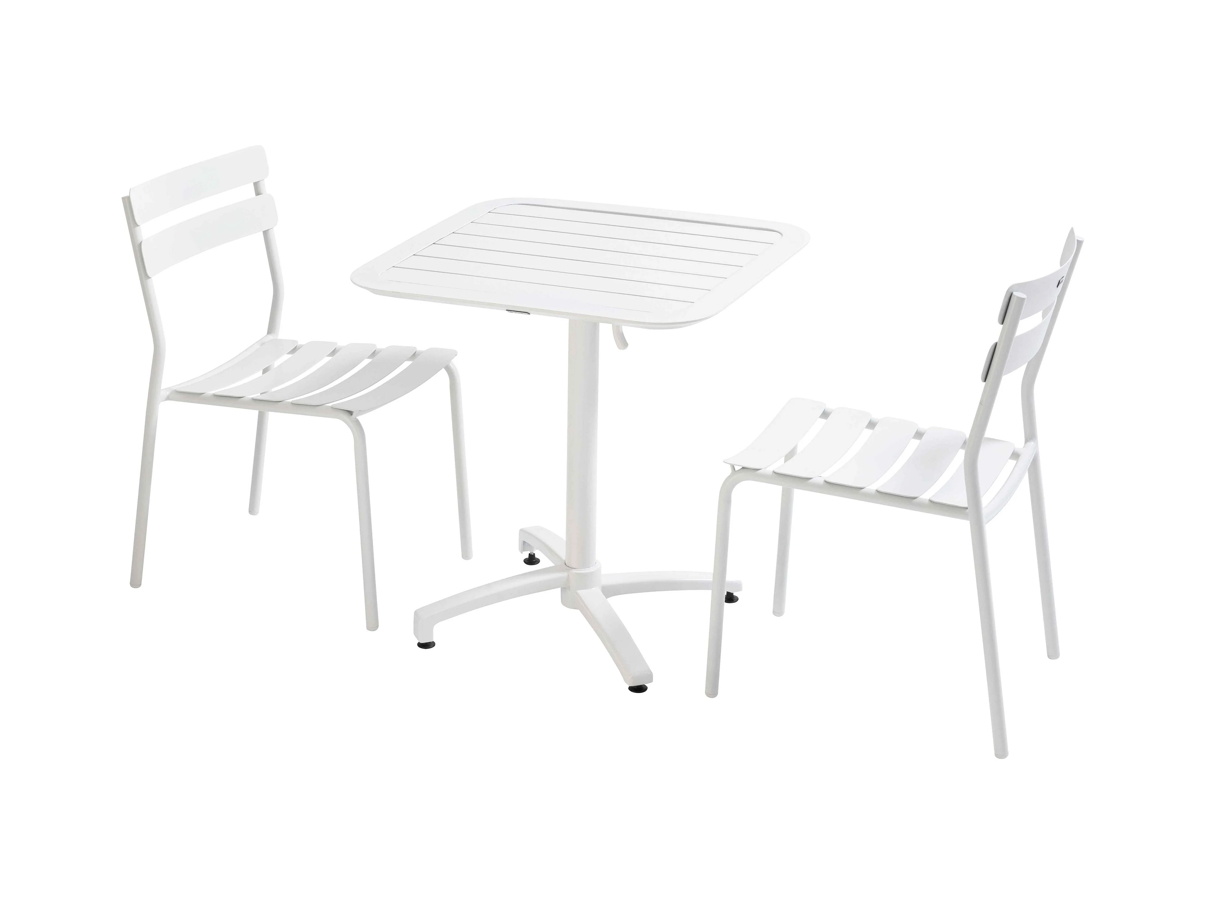 Ensemble table inclinable de terrasse 70 x 70 cm et 2 chaises blanc