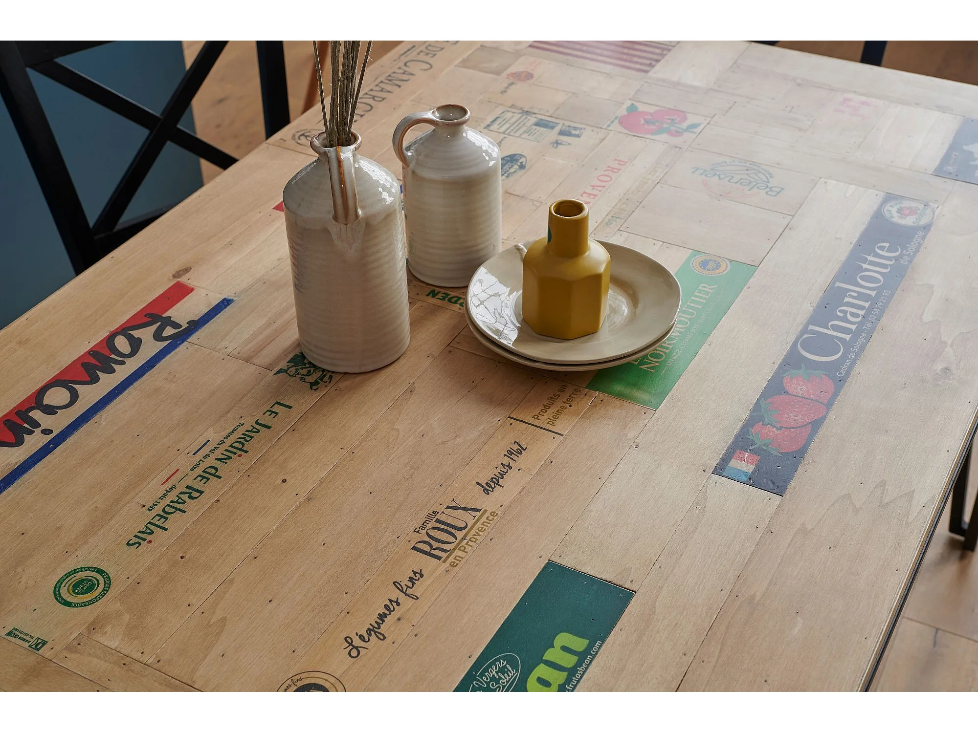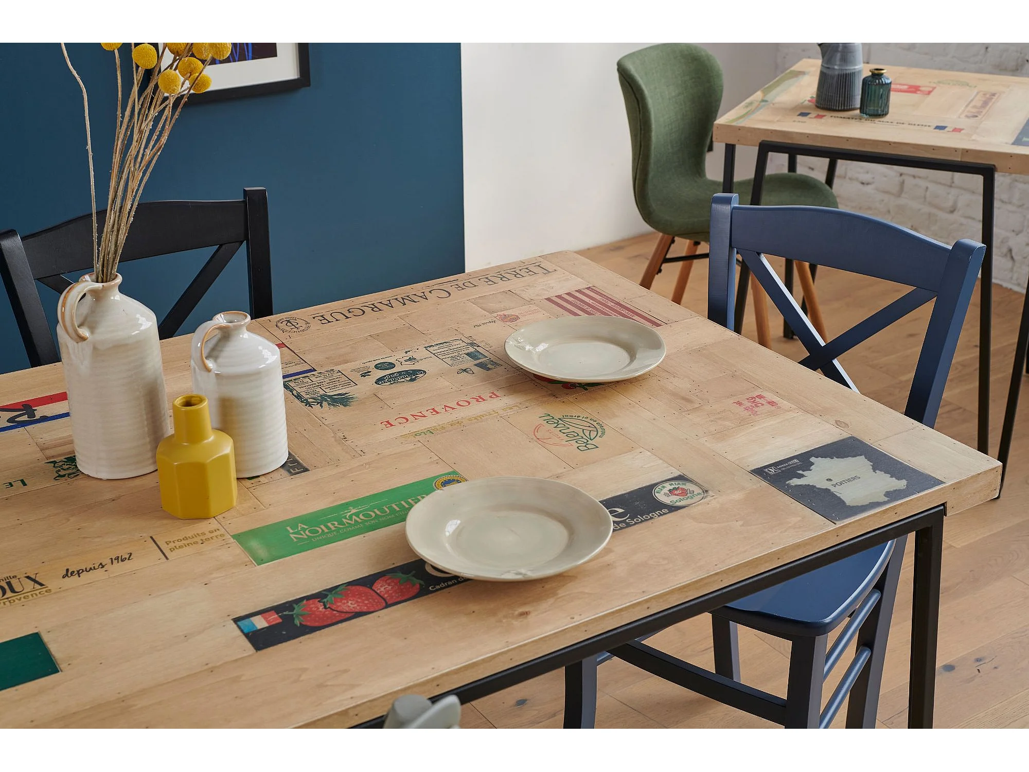 Table indus rectangulaire en bois recyclé et pied métal L160 - DEMETER