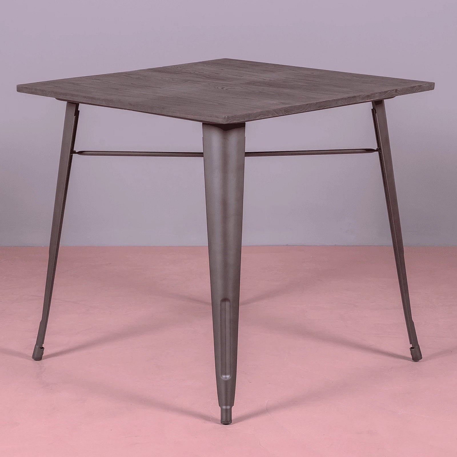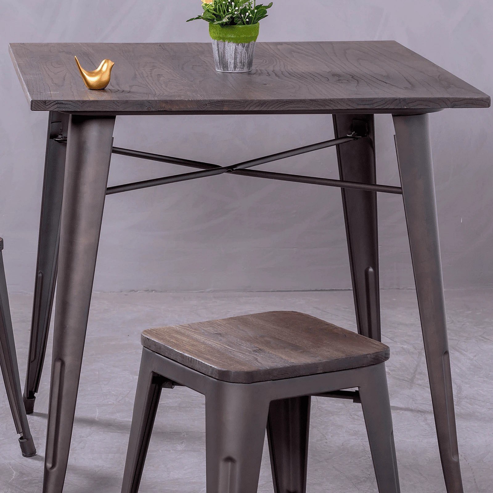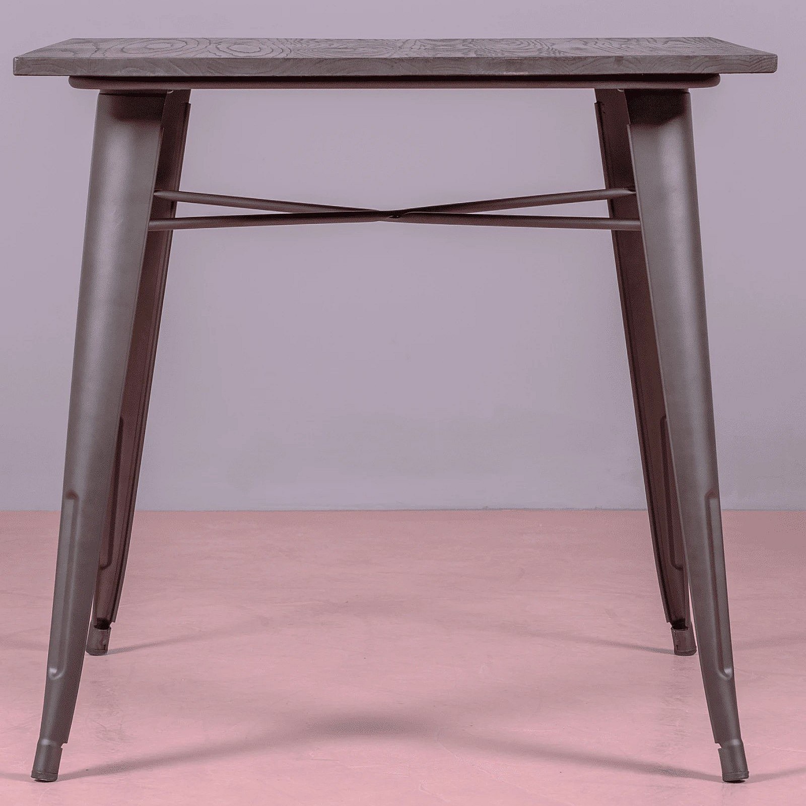 Table industrielle en acier vieilli et bois foncé - Bistro - Antique