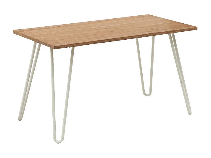 Table Industry 120 x 60 cm en métal blanc mat et plateau en bois clair - Pieds épingles