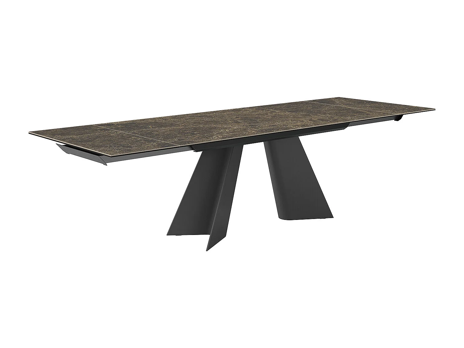 Table jumelée extensible - gris charbon, rectangulaire avec bord régulier, plateau en porcelaine emperador