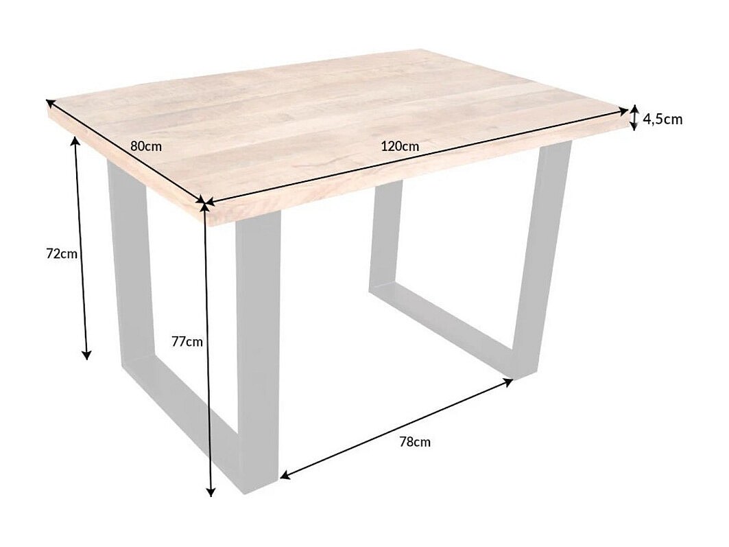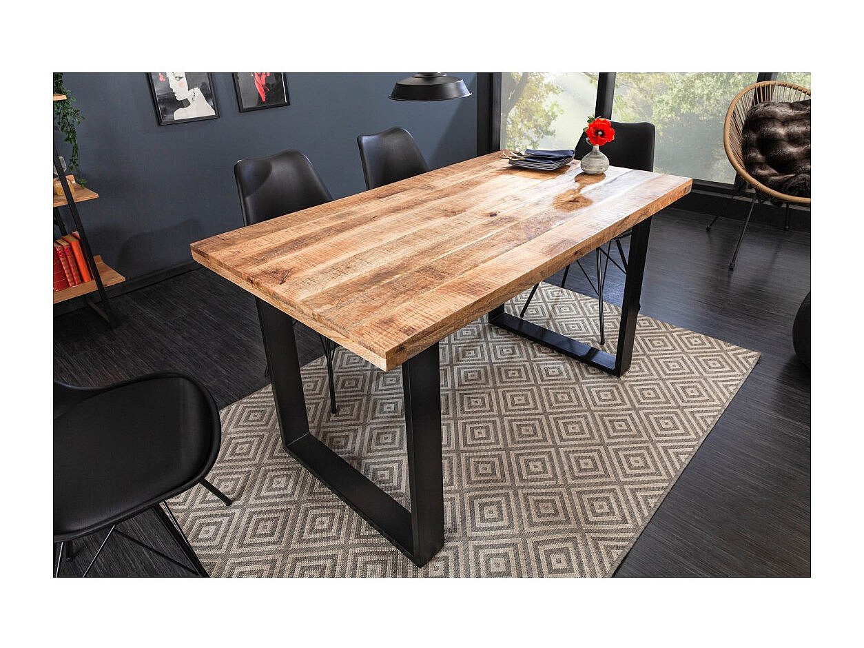 Table LODEN 120 cm – Plateau en bois massif de manguier verni – Pieds en U en métal noir