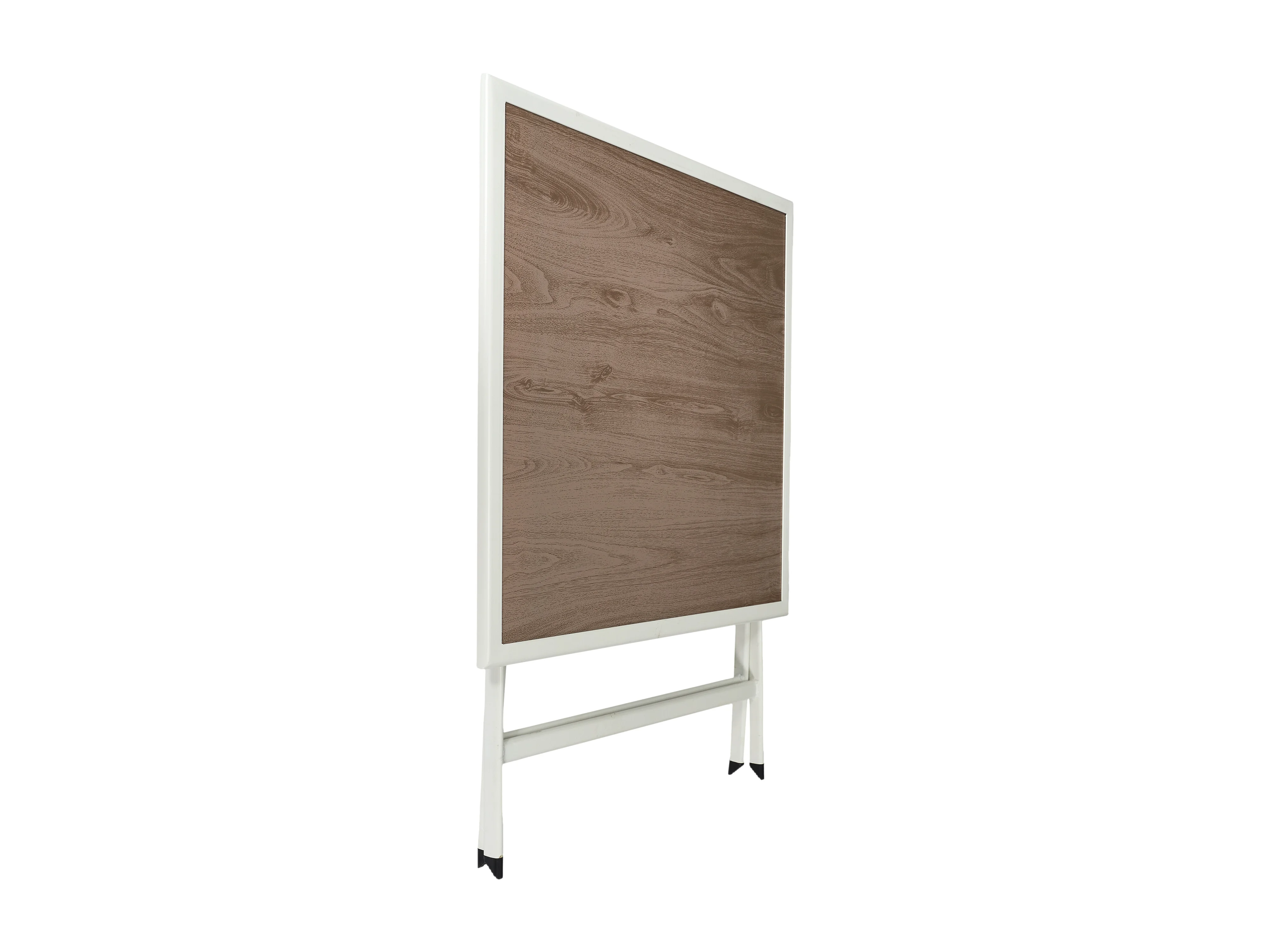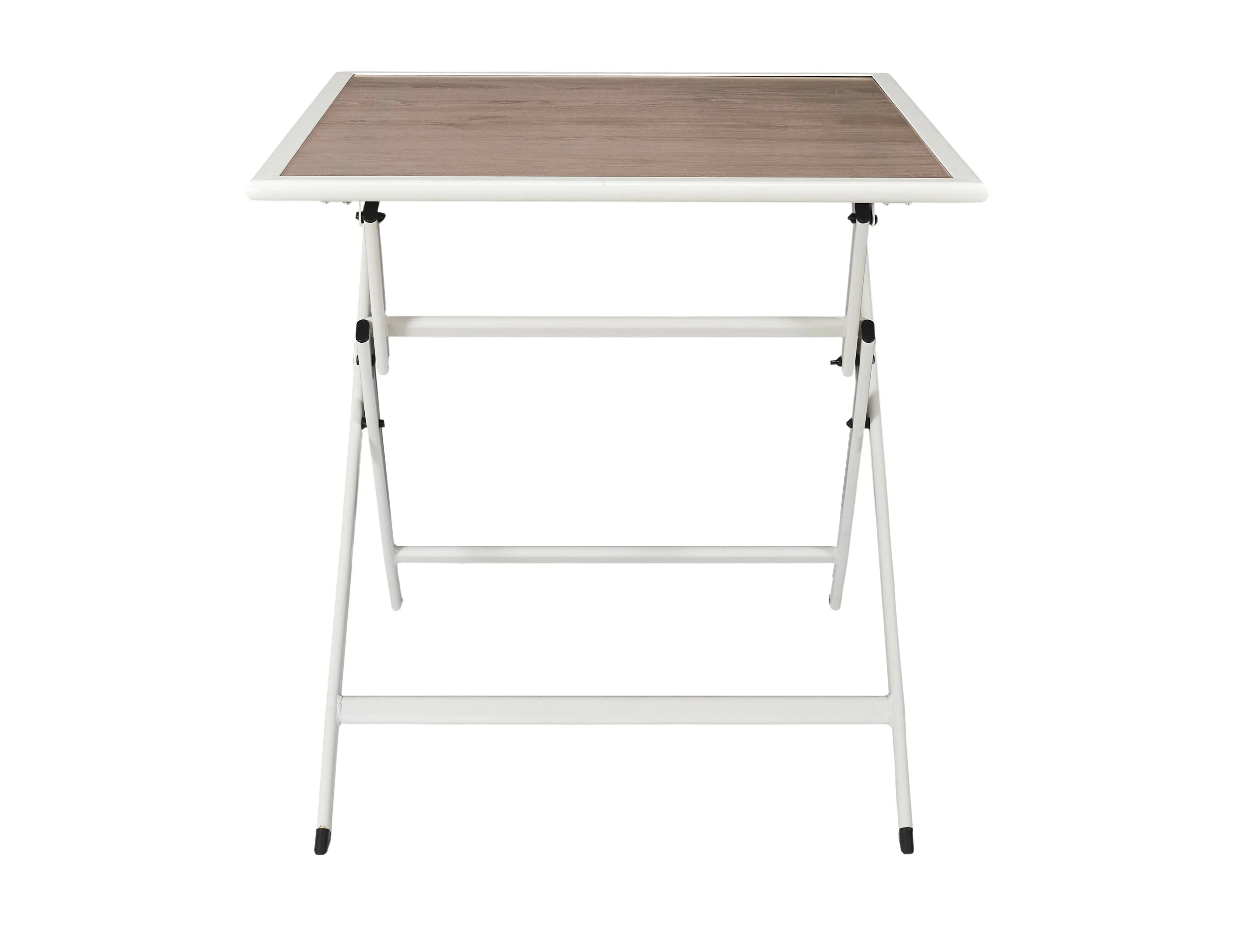 Table Metal Blanc Effet Bois Barcelone 70x70