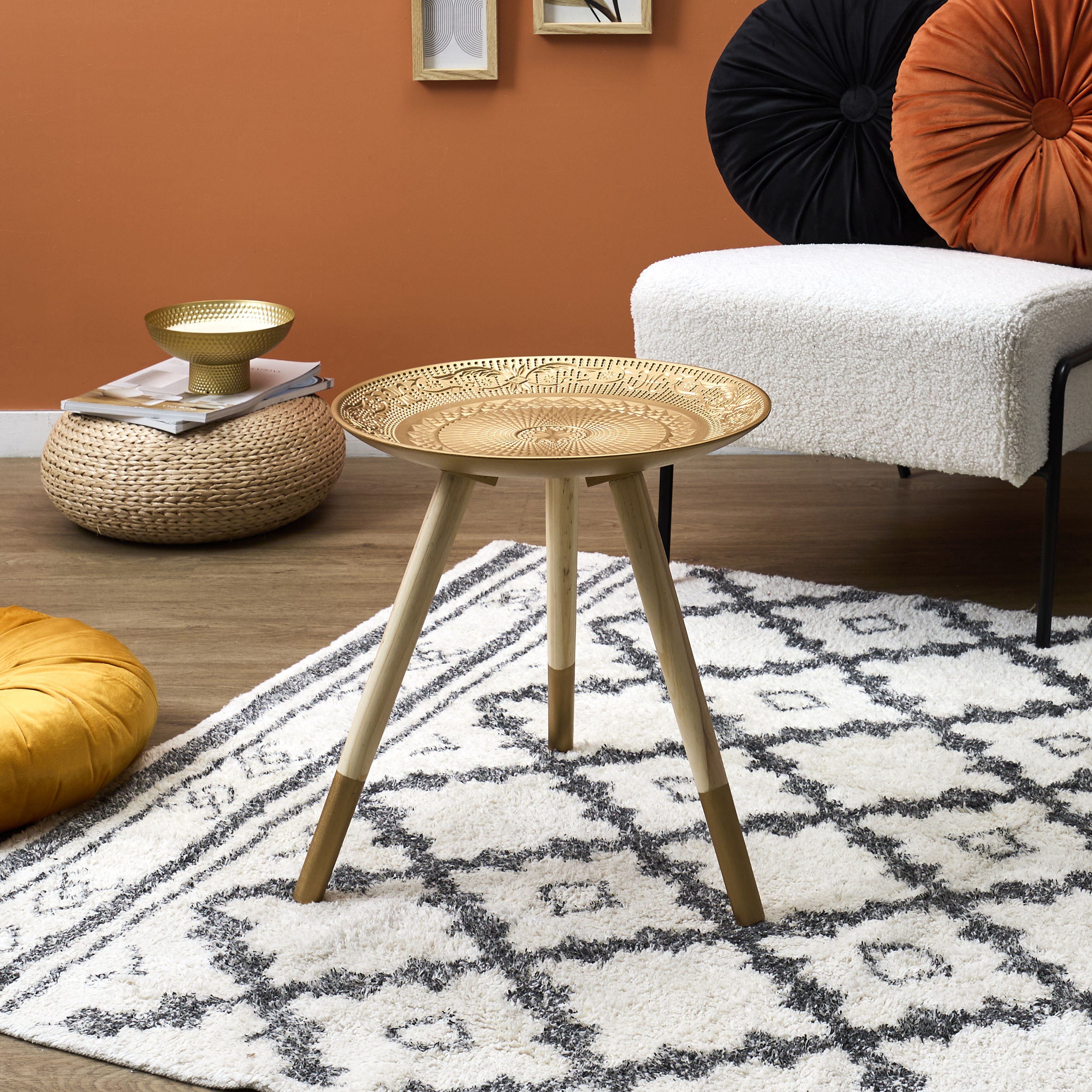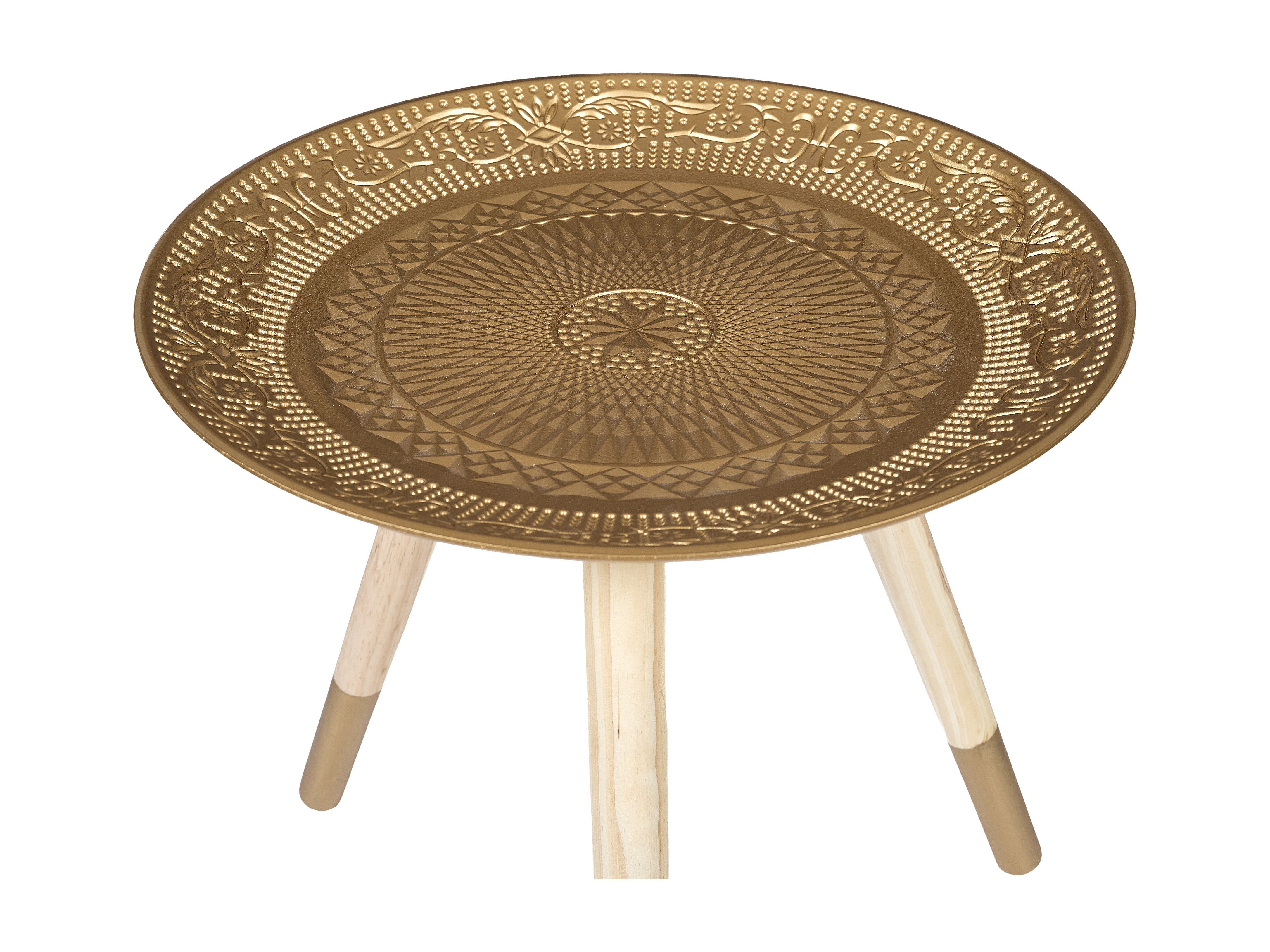 Table d'appoint en bois de sapin coloris marron et métal doré - diamètre 55,5 x Hauteur 53 cm