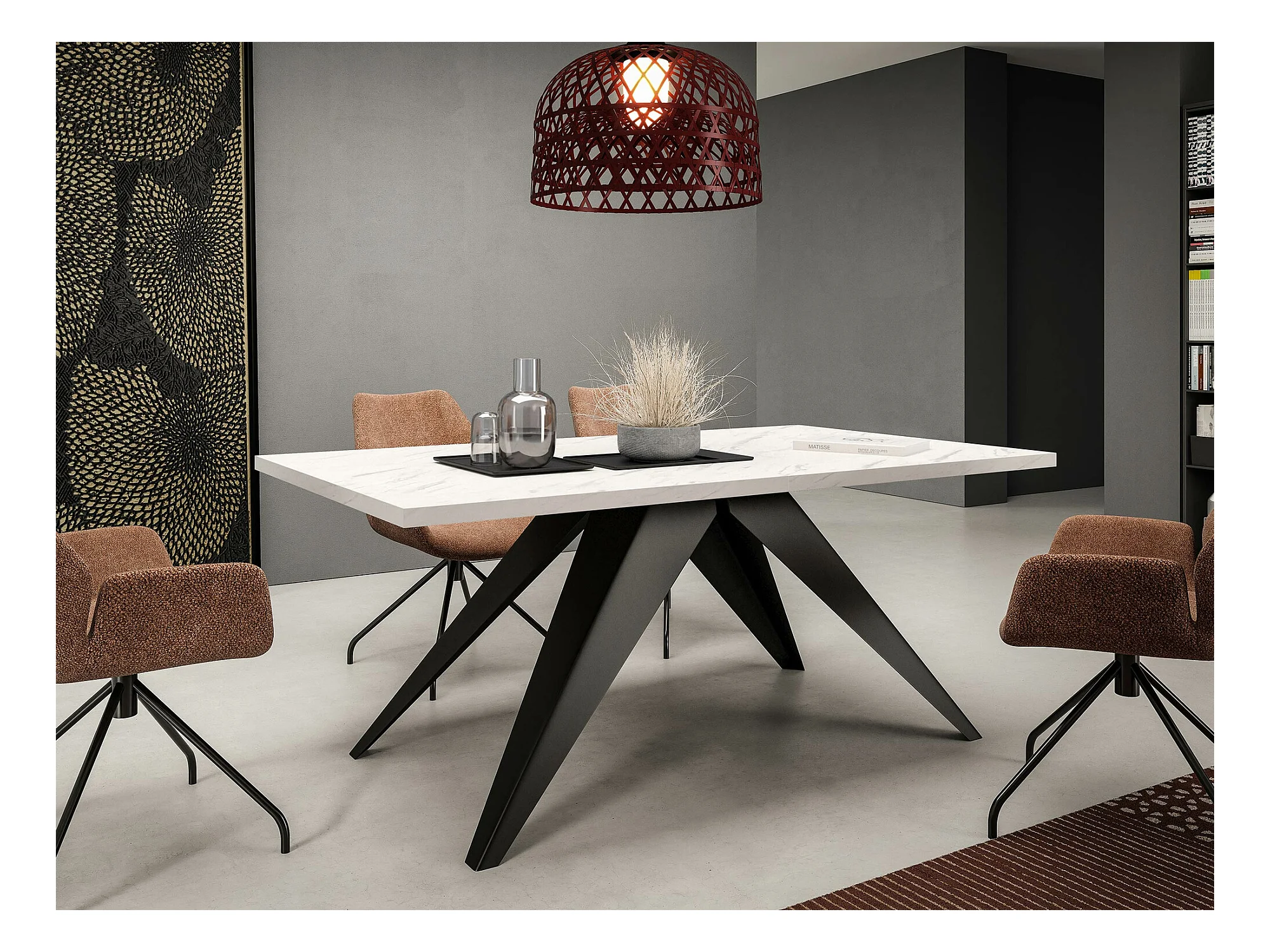 Table Oswego 113, Noir|Marbre blanc, 76x80x140cm, Allongement, Stratifié, Métal