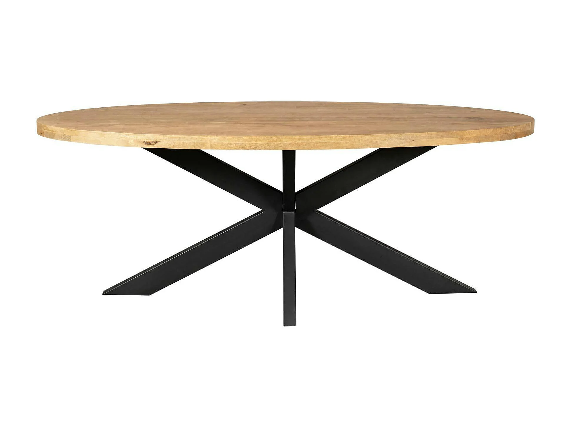 Table ovale bois clair pied croisé métal noir 180 cm RIVANO