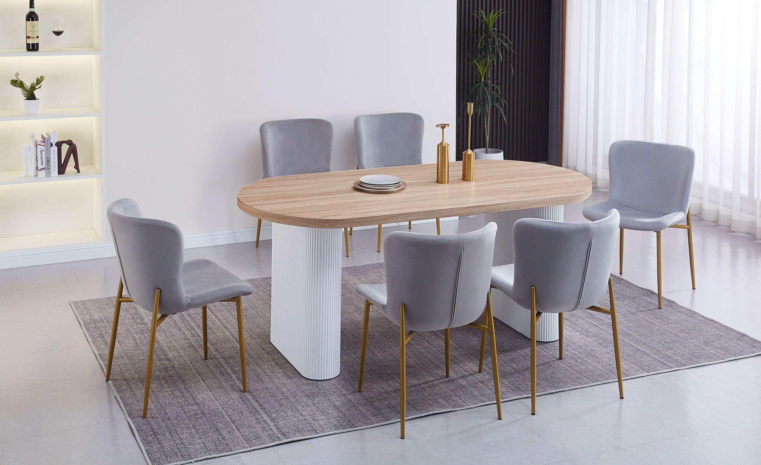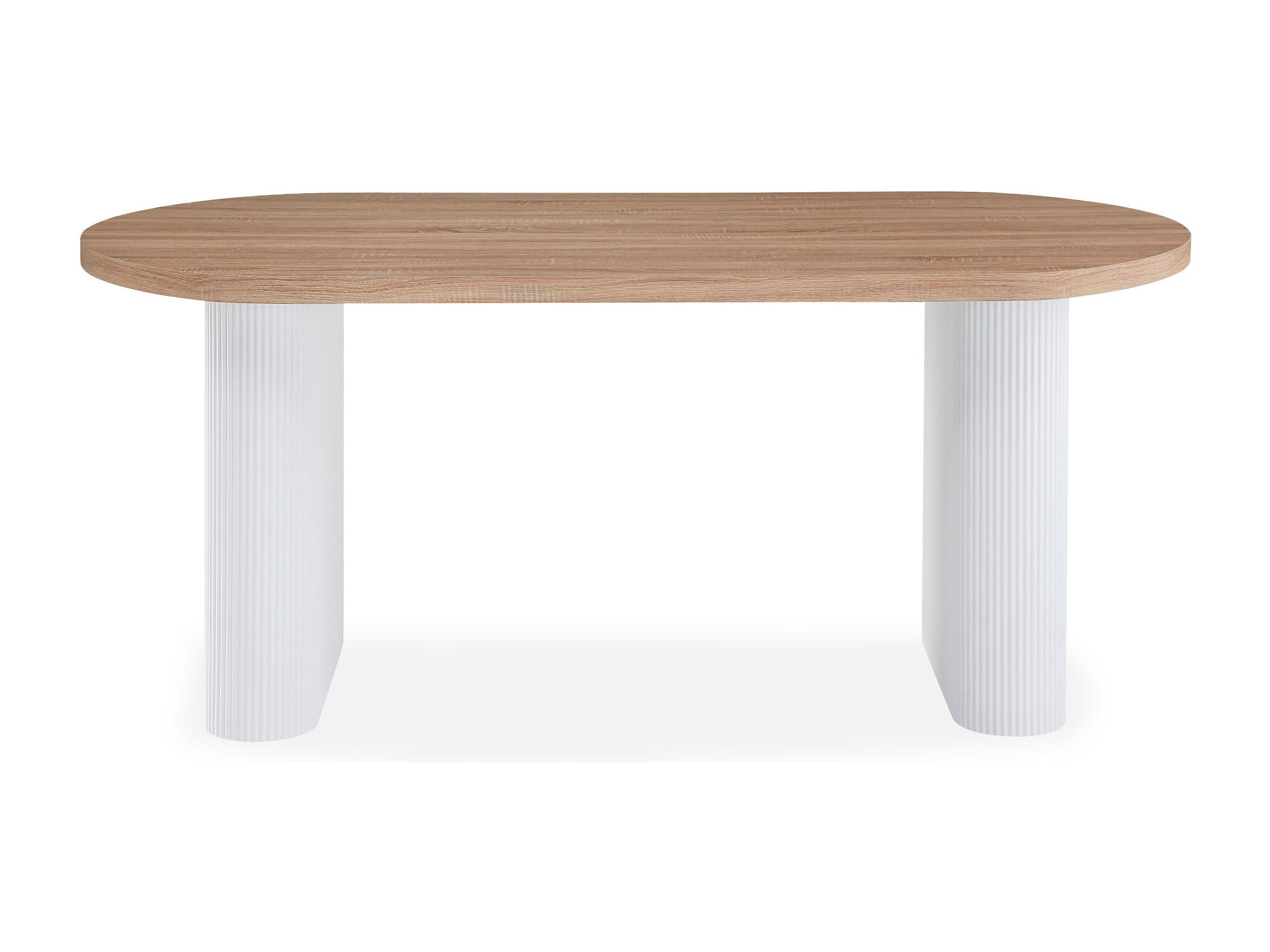 Table ovale Burundi avec pieds design style colonnes Bois Sonoma et Blanc