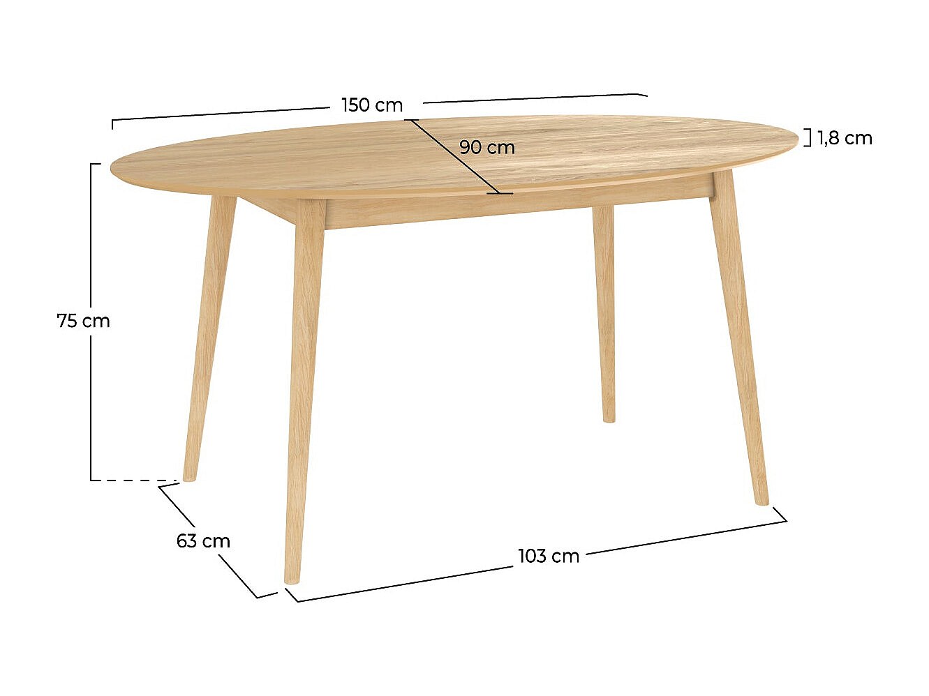 Table ovale 6 personnes en bois clair 150 cm - Eddy