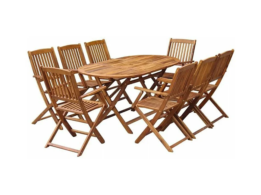 Table ovale et 8 chaises de jardin acacia clair Polina